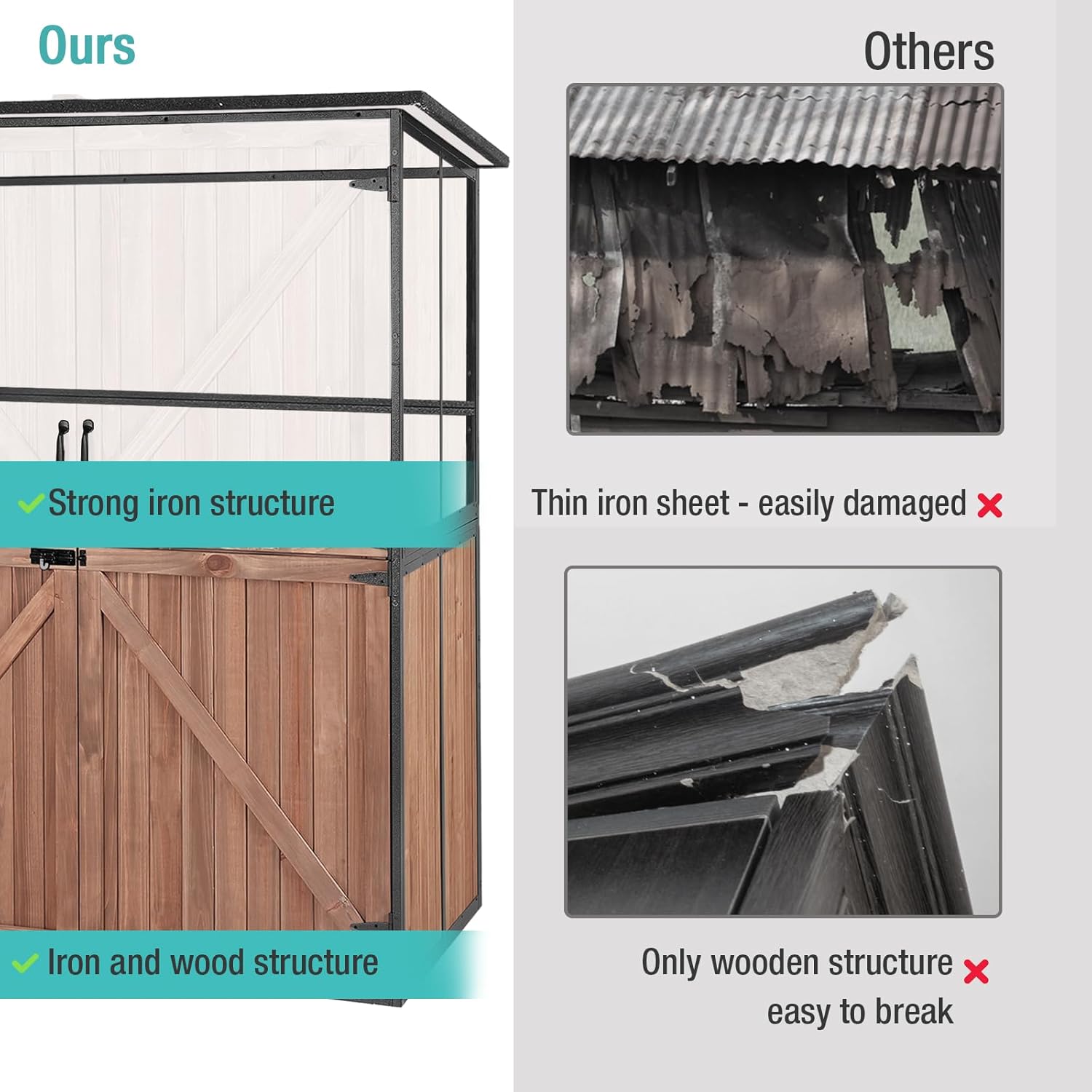 - Enhanced Durability: Featuring thicker metal frames, this outdoor storage shed can withstand the test of time. It is not easily damaged, offering you lasting utility