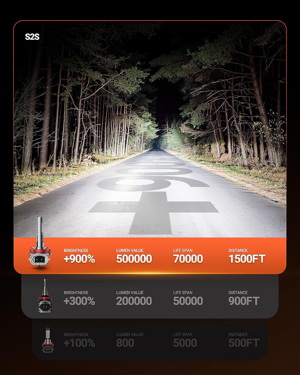 - 50000 Lumen Illumination: With a 2025 upgraded chip and 16 lamp beads, our bulbs deliver a bright 50000 Lumens, providing clear visibility and enhancing safety during nighttime driving.