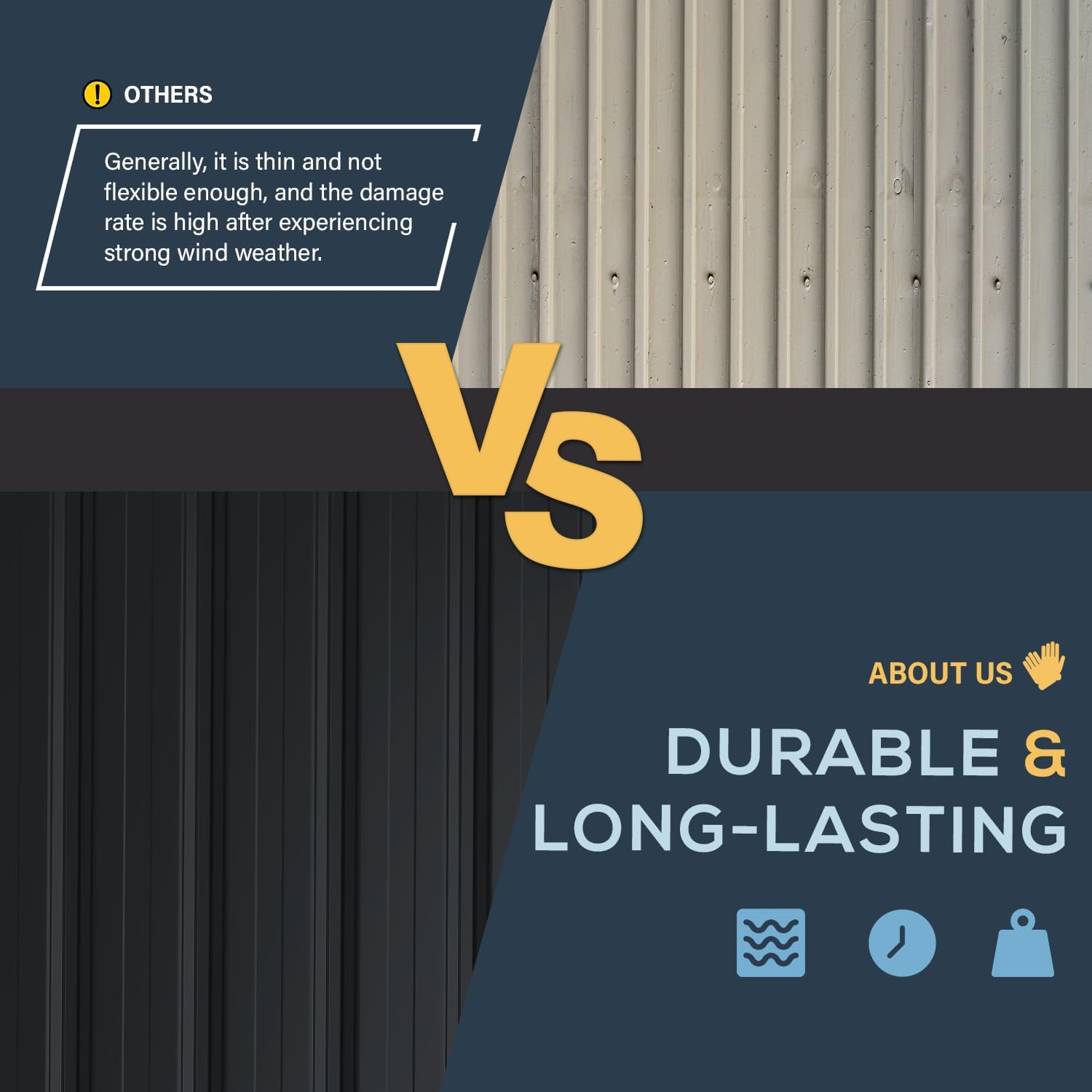 - Sturdy and Resilient: Reinforced metal plates lend this shed a weight that surpasses most alternatives on the market, greatly enhancing its stability and far exceeding lower-cost options. It's built to withstand extreme weather, with exceptional wind resistance up to 70 mph.