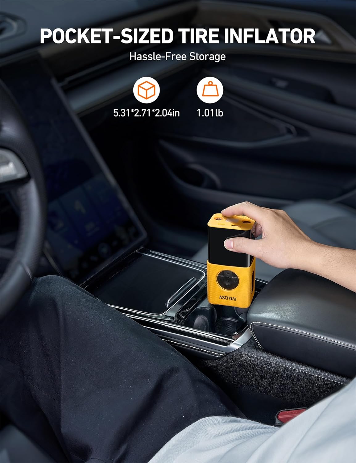 - 2X FASTER INFLATION & UNMATCHED PORTABILITY: The tire inflator’s 150 PSI maximum pressure, coupled with its 17L/min airflow delivers 2X faster inflation, can refill a 195/65R15 tire from 30 to 36 PSI in 1.5 minutes. Weighing only 1.01 pound(5.31*2.71*2.04 IN), this bike air pump is easy to carry and store in any limited space, such as car trunks, bike racks, or backpacks.