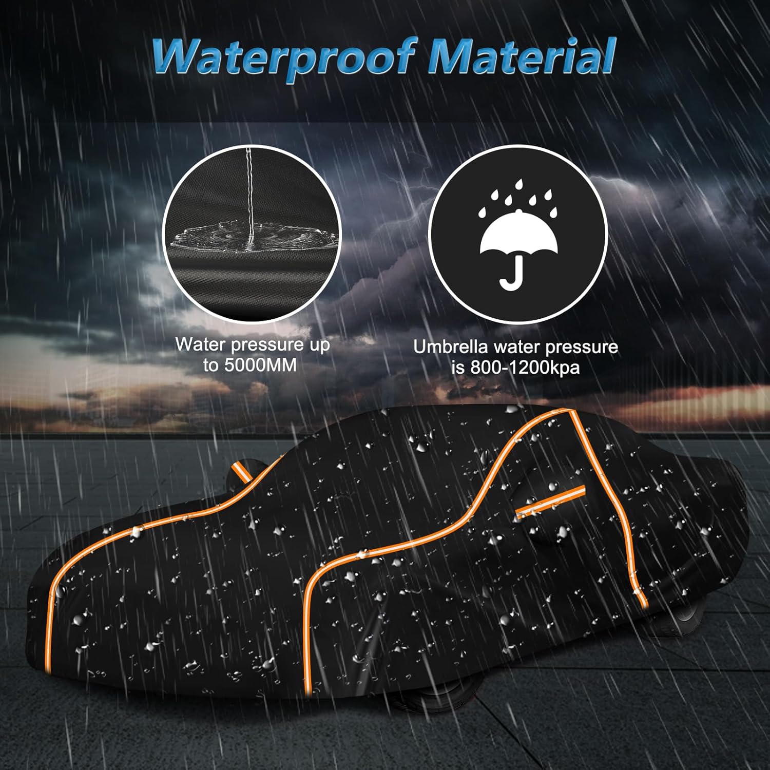 - 【All-Weather Protection】Made black 210D Oxford cloth and cotton and PU waterproof fabric as material, ensuring its quality is tough, durable, and safe in strong wind conditions. Suitable for all weather and seasons. Protects your vehicle and paint from rain, snow, sun, bird droppings, pollen, dust/dirt - suitable for all seasons (spring, summer, fall, winter).