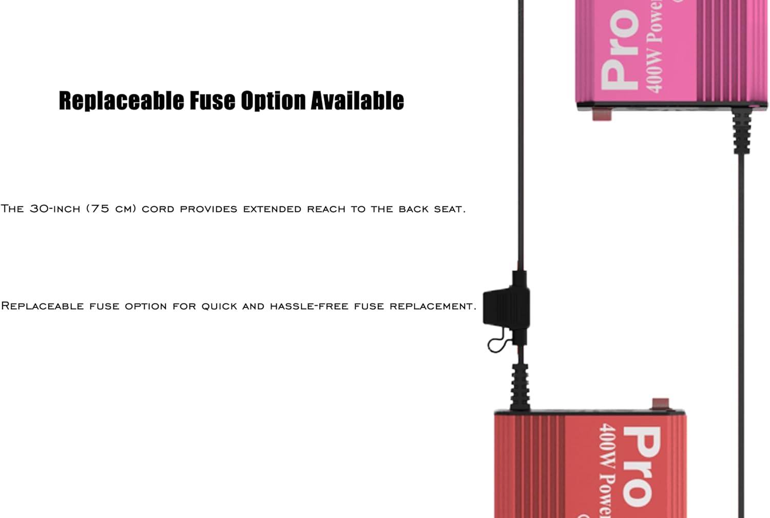 Pro Chaser 400W Vehicle Power Inverter - 12V DC to 110V AC Car Converter, Dual AC Outlets, USB-A QC 18W & USB-C PD 65W Ports, Road Trip Charging Companion with Replaceable in-Line Fuse