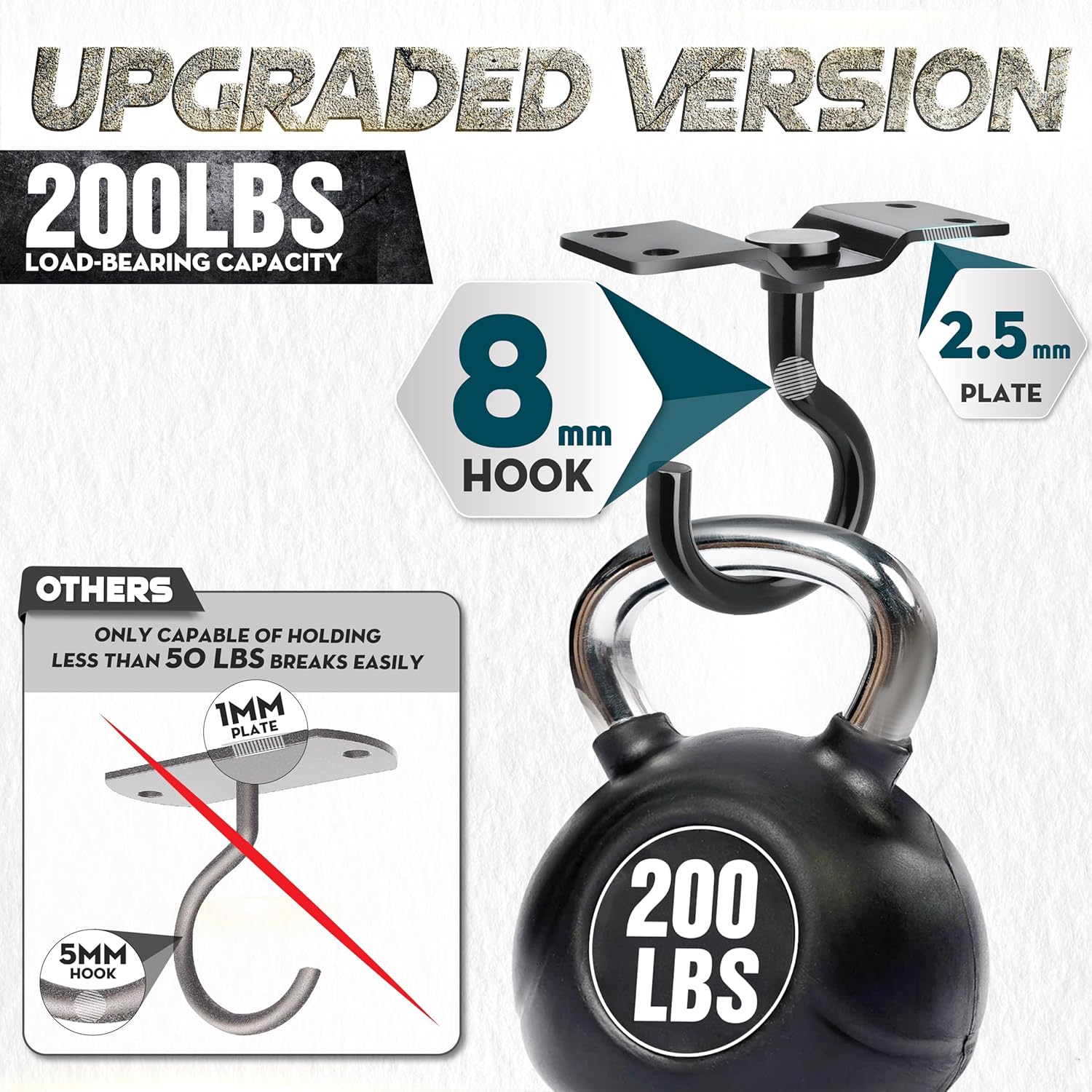 - [200 LBS Load-Bearing Capacity] Our ceiling hooks for hanging plants have a base with four firmly drilled holes and durable construction, which boasts an impressive loading capacity compared to others on the market. With the ability to carry a high load-bearing weight of up to 200 lbs, this hanging plant hook outdoor ensures it delivers dependable performance for many years.