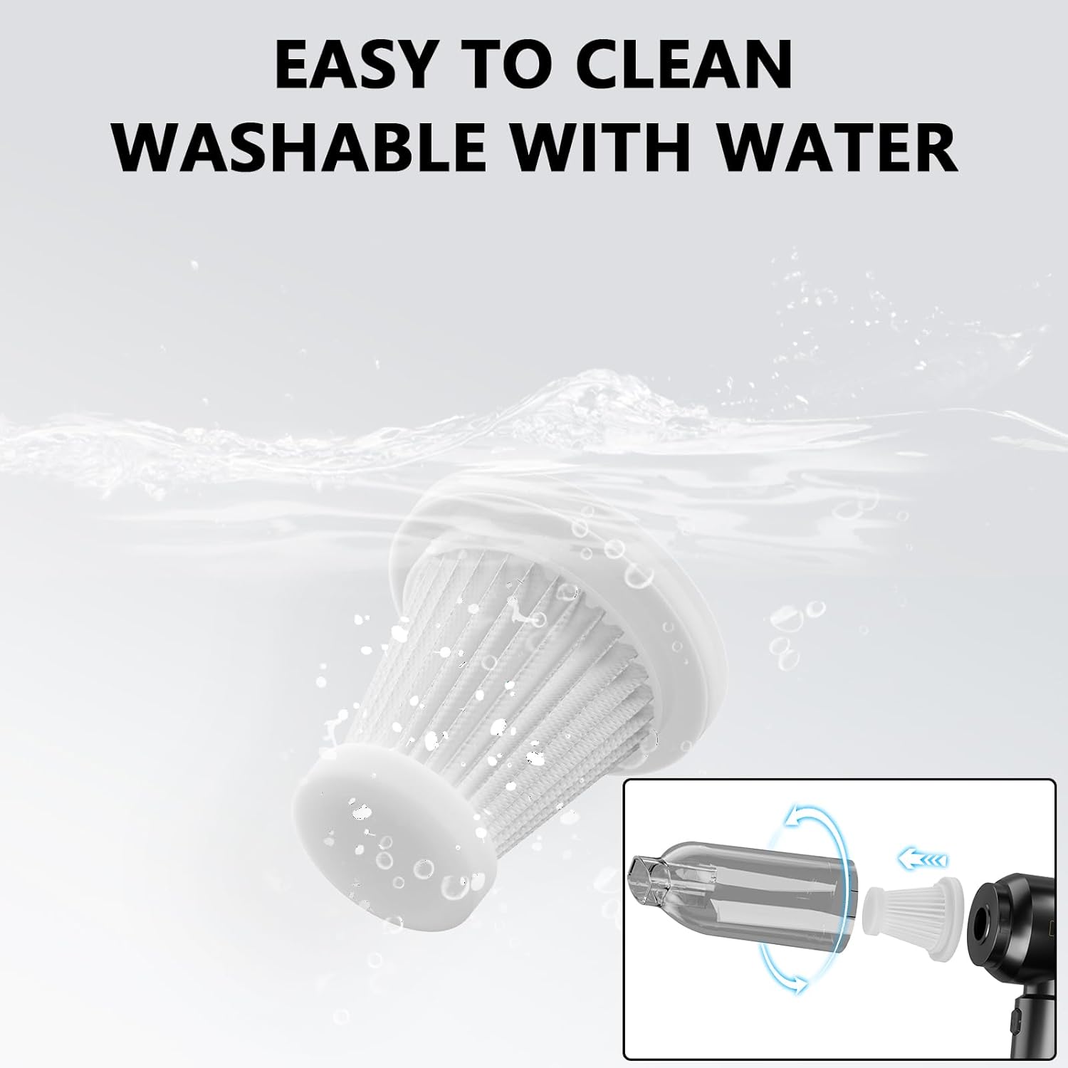- 【Compact & Easy to Carry】This small vacuum cleaner is compact and comfortable to hold. Its included organizer bag simplifies storing and carrying the accessories, all of which are washable (excluding the vacuum itself). The high power car vacuum comes with a USB-C charging cable, enabling charging via a car charger, power bank, or other USB sources, and fully recharges in about 2 hours. The vacuum's battery level is conveniently displayed on the screen.