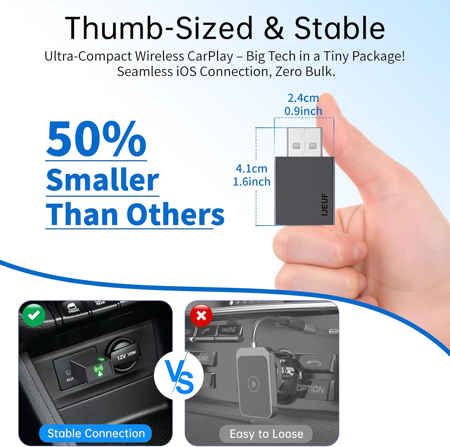 Wireless CarPlay Adapter for iPhone 2025 Upgrade,Ultra-Low Lag,Stable Connection,Mini Bluetooth Apple Car Play Adapter for iOS 10+ and Car from 2016+,USB A