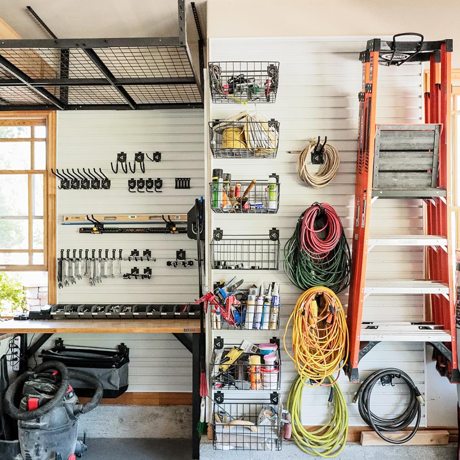 - Space-Saving Wall-Mounted Design Wall-mounted installation frees up valuable floor space, keeping garages, stores, showrooms, or outdoor areas (near docks, house sides) neat and organized. Ideal for both indoor and outdoor storage.