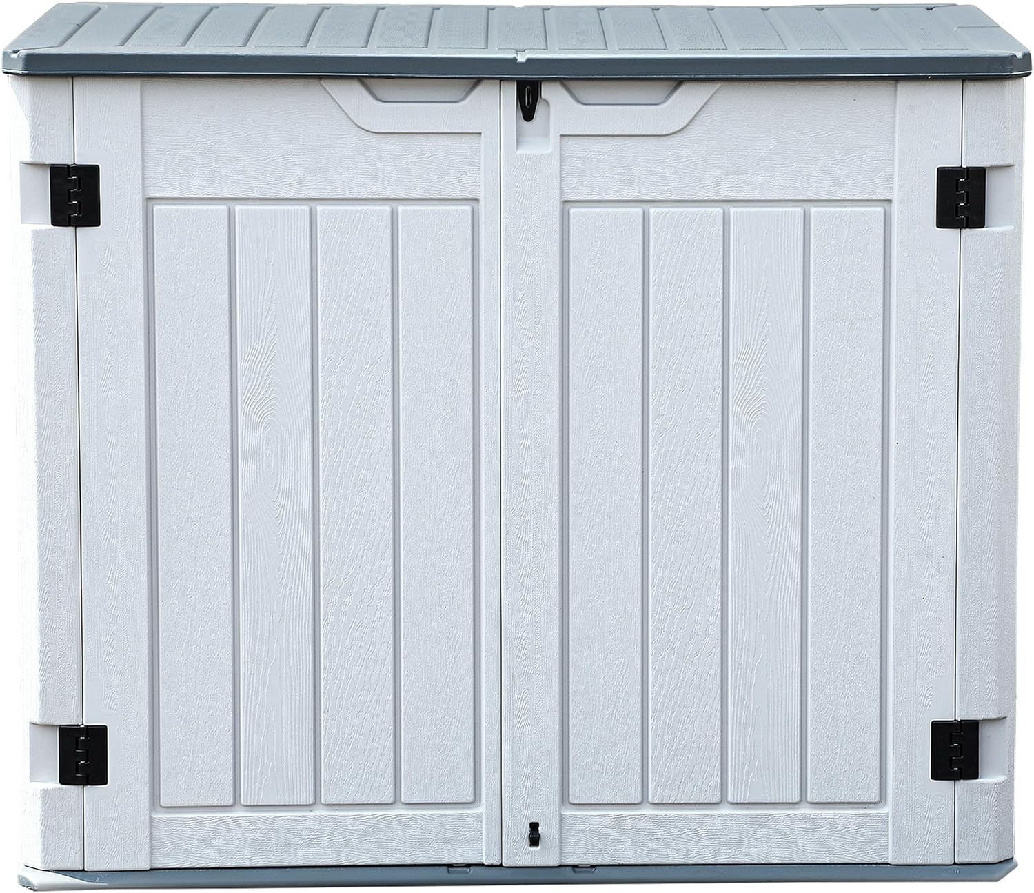 - Weather-Resistant Design: Our outdoor storage shed is constructed from UV-protected, weatherproof resin for all-season use and upkeep; The appealing wood-like texture retains its look; The innovative lid design ensures water stays out
