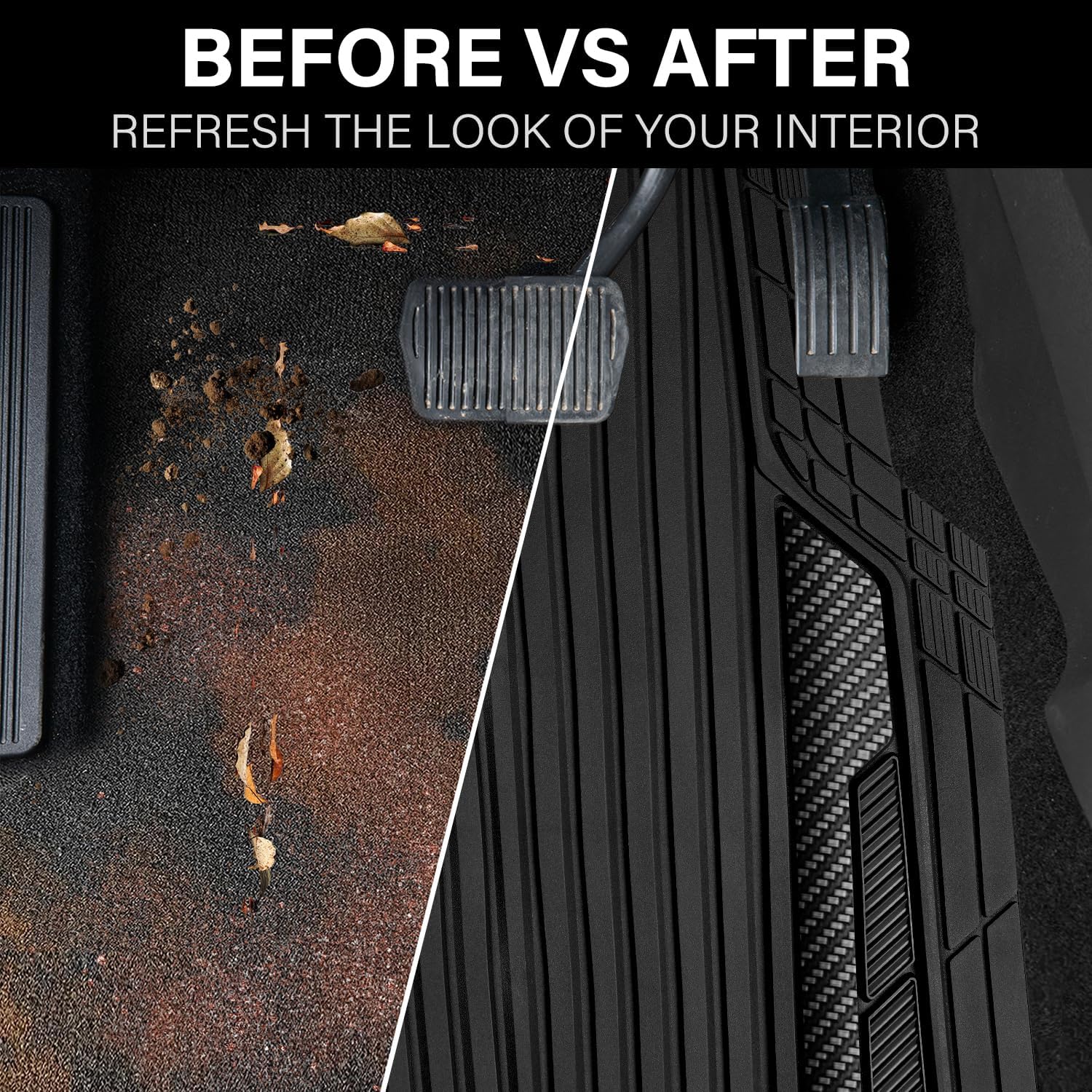 - 【Trimmable Universal Fit】 The rubber car floor mats were designed to fit most cars,vans and SUVs,there are cuttable lines on the sides of the car mats, and these floor mats are made of flexible material that molds to the shape of your car's interior, providing a semi-customizable fit.