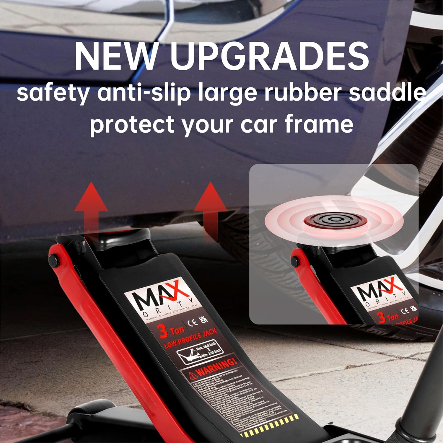 - Impressive 3-Ton Capacity: This versatile floor jack can effortlessly lift up to 3 tons (6,000 lbs), making it a reliable choice for a wide range of vehicles, from cars to SUVs and light trucks. It's your go-to support for any automotive task, ensuring that it can handle any vehicle you need to work on.