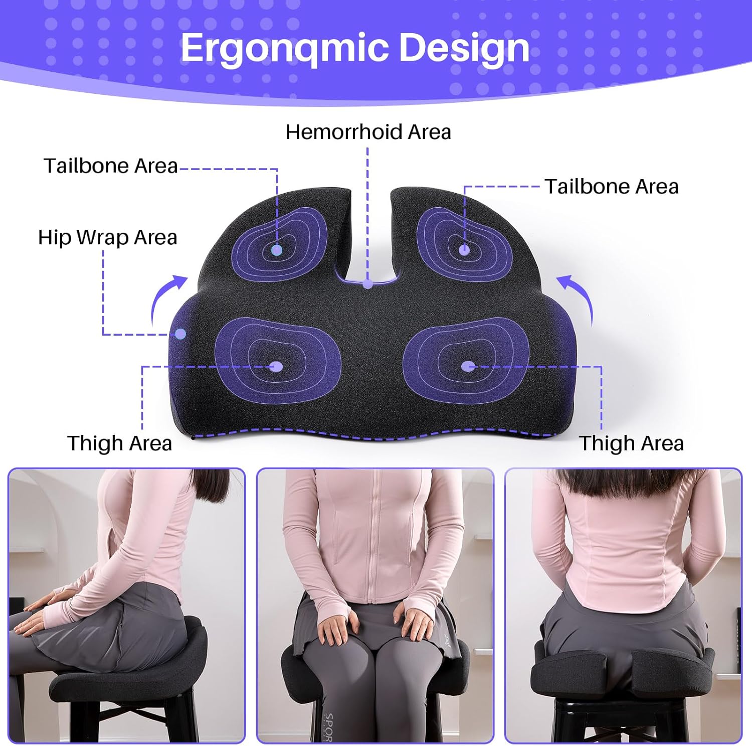 - Ergonomic Design: Unique tailbone contour U-shape reduces pressure on the lower back, hips and tailbone, and evenly distributes weight to relieve body fatigue, tailbone pain, sciatica and other spinal problems