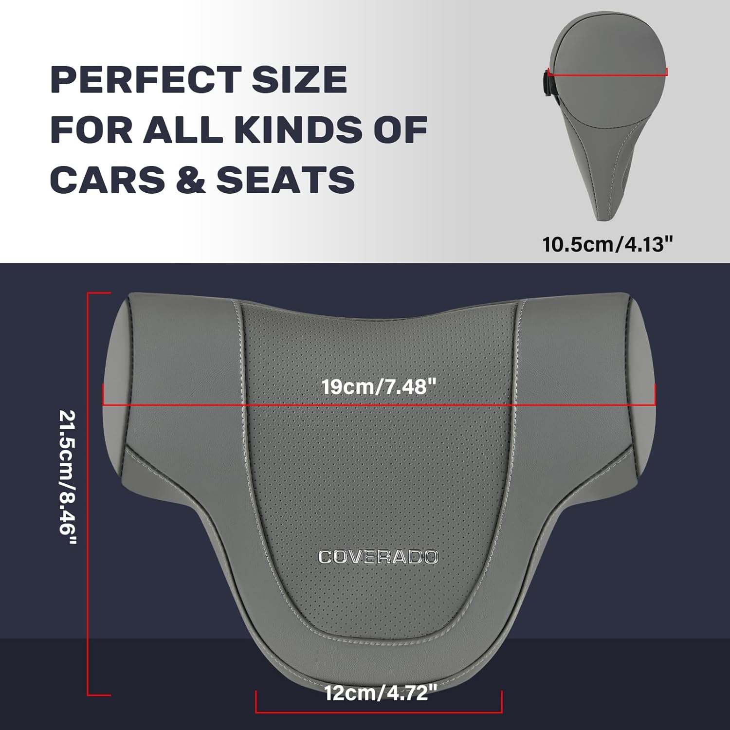 Coverado Car Headrest Pillow, Ergonomic Memory Foam Car Neck Pillow for Driving Seat with Adjustable Strap, Soft PU Leather Breathable Removable Cover Neck Support for Neck Pain Relief - Gray