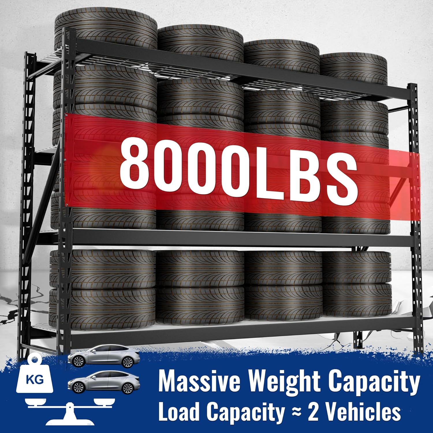 - 【8000LBS Heavy-Duty Capacity】This garage shelving supports up to 2000 lbs per shelf, totaling 8000 lbs.Built with welded steel and reinforced beams, it’s perfect for storing heavy loads.
