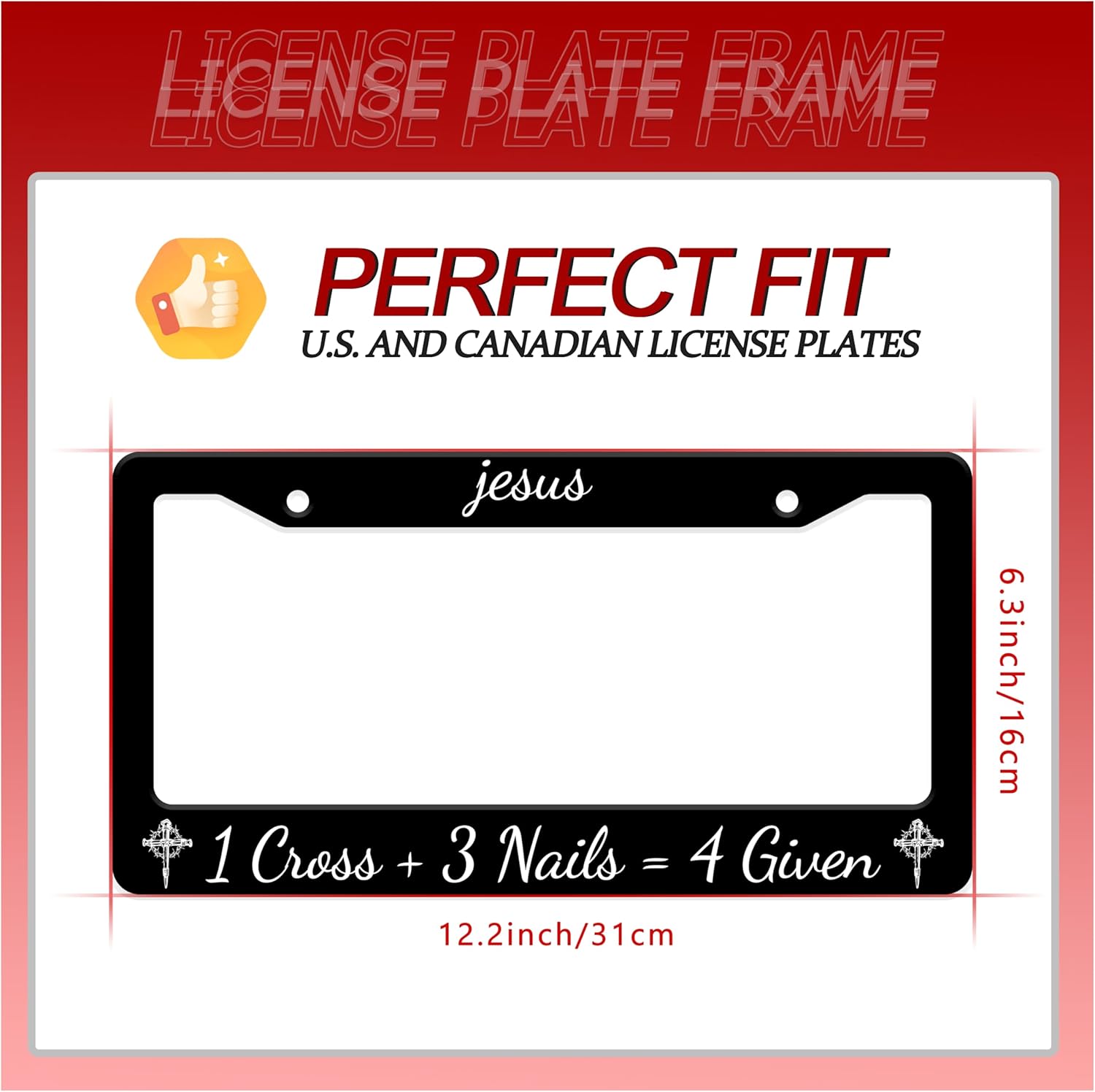 - 【Standard License Plate Size】:Our license plate frame size is 12.2 x 6.3 inches. This license plate frame will fit most of the standard license plates in the United States and Canada, and perfectly match your car license plate accessories.