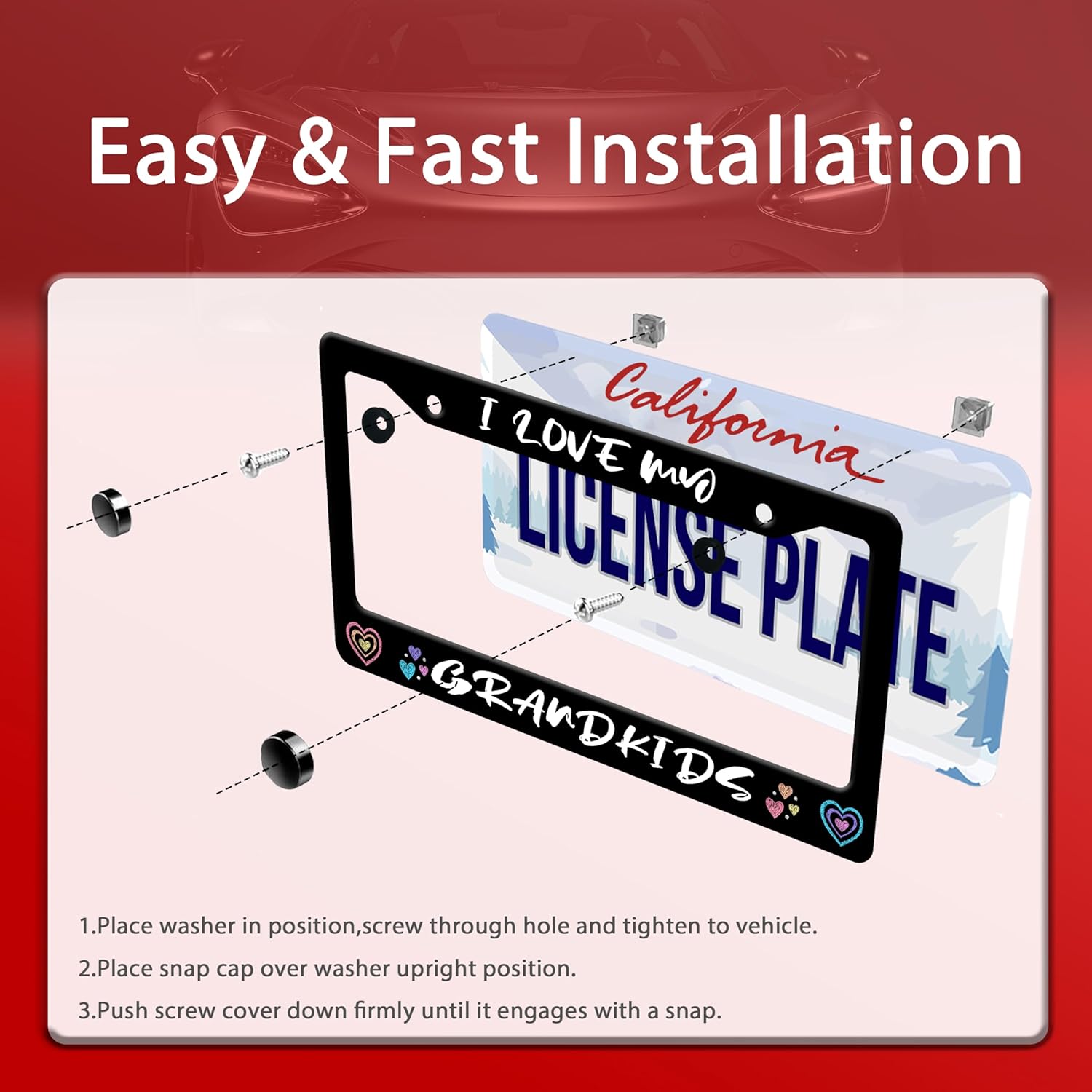 Personalized License Plate Frame I Love My Grandkids Stainless Steel Accessory Family License Plate Holder Funny Car Decorative 2 Holes Fits Us Standard License Plates 12.2 X 6.3 in for Men Women