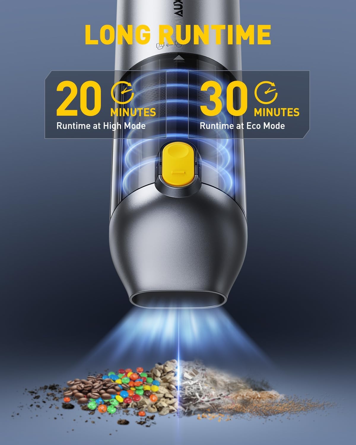 - 【4 IN 1 MULTI-FUNCTIONAL CORDLESS CAR VACUUM】AUXITO Mini Vacuum Car Cleaner is equipped with a variety of nozzles to perfectly meet the different needs of vacuuming, blowing, inflating and pumping. It not only quickly cleans car seats, trunks, floor mats, computer keyboards, sofas, carpets and any hard-to-reach places, but also helps to inflate yoga balls, swimming rings and all inflatable items, and vacuums air for all kinds of vacuum storage bags to save space