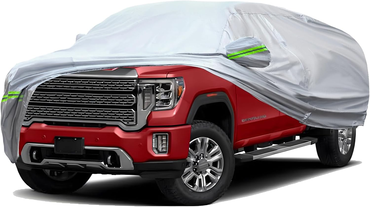 TUCAREST 6-Layers Heavy Outdoor Pickup Full Car Cover Hard Shell Zipper Design Waterproof All Weather Weatherproof UV Sun Protection Snow Dust Storm Resistant with Straps (Fit for UP to 230"-260")