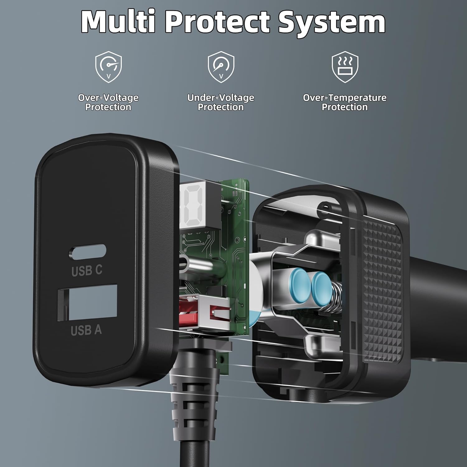 - LED Voltage Display for Enhanced Monitoring: Equipped with an LED voltage monitor, this power cable keeps you informed of your power supply status. Precise voltage monitoring and smoke plug protection system provide real-time voltage readings and safeguard equipment. Ensuring efficient charging and preventing overloads for added peace of mind.