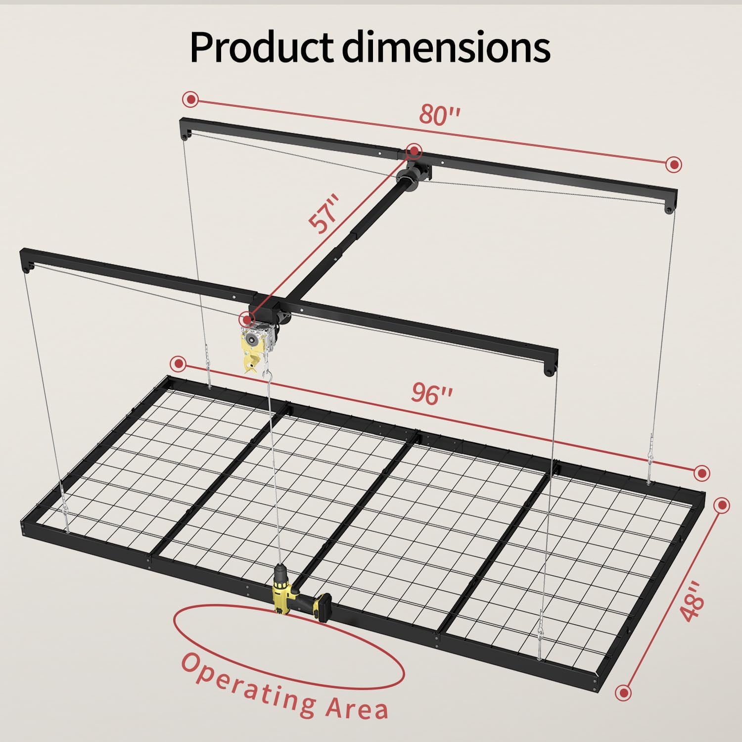 - Innovative Garage Lift Storage System for Easy Access: The FERO ceiling storage rack uses a reliable garage lift storage system with hand crank or drill operation—no ladder required. This ceiling storage lift system enhances garage organization by saving time, effort, and maximizing vertical space among garage overhead storage racks.