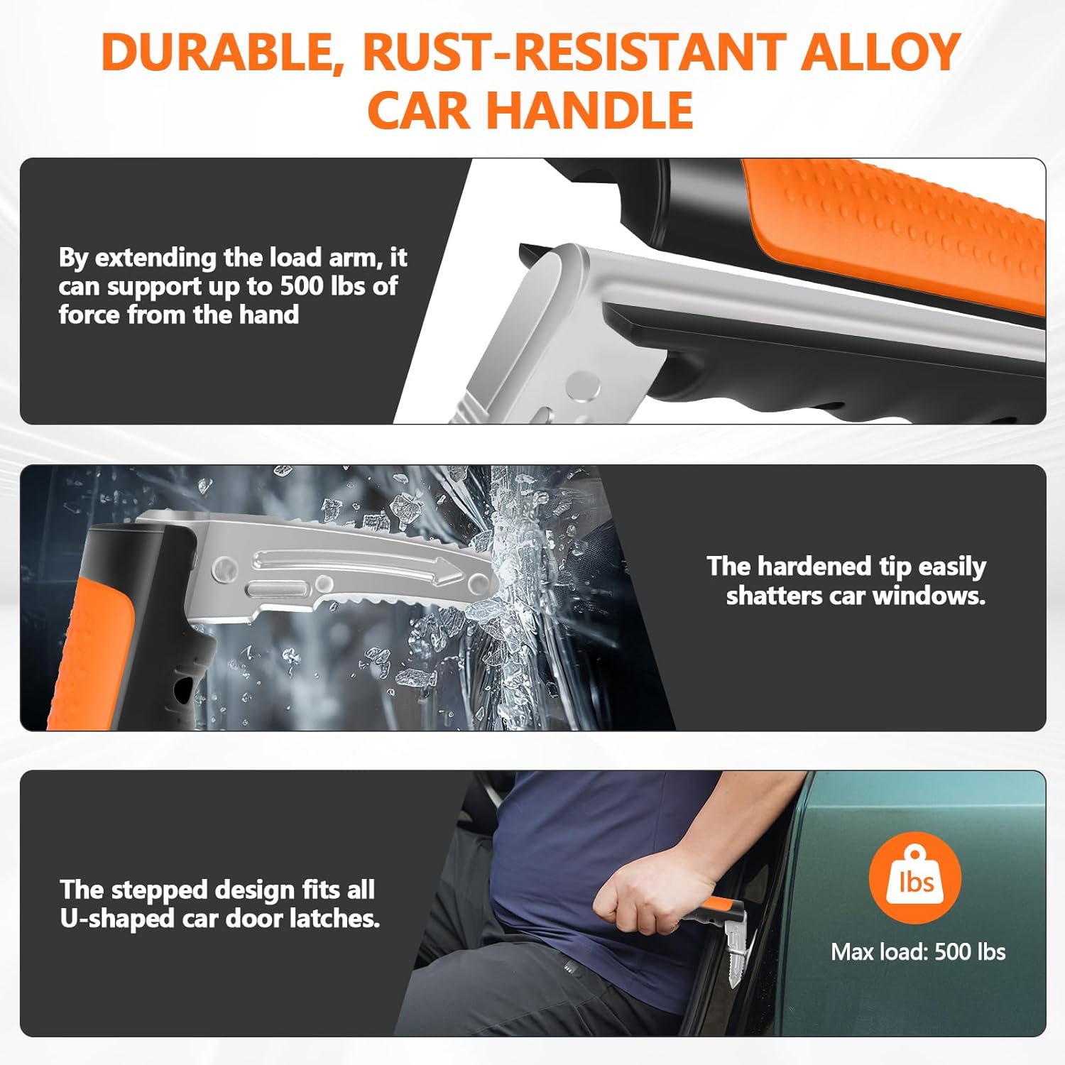 - 【Supports up to 500 Pounds】The car handle is made of premium forged steel, featuring rust and corrosion resistance. Its extended and reinforced design supports up to 500 pounds, enhancing safety for seniors when getting in and out of the car.
