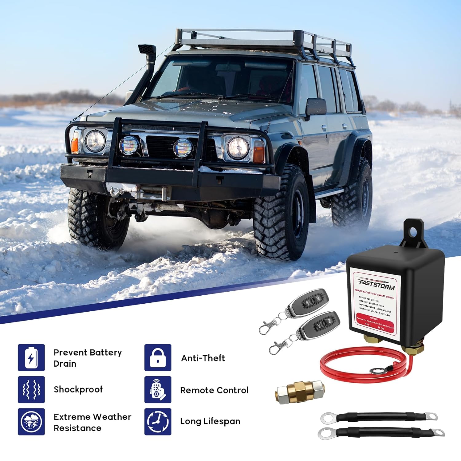- Safety Protection:The remote battery disconnect switch easily solves the problem of battery drain protects the circuit, but also reduces the risk of theft occurs. The battery is via the remote switch, which also reduces the risk of theft occurs. You simply press the remote control button to disconnect your car power system, easy to use and improve security