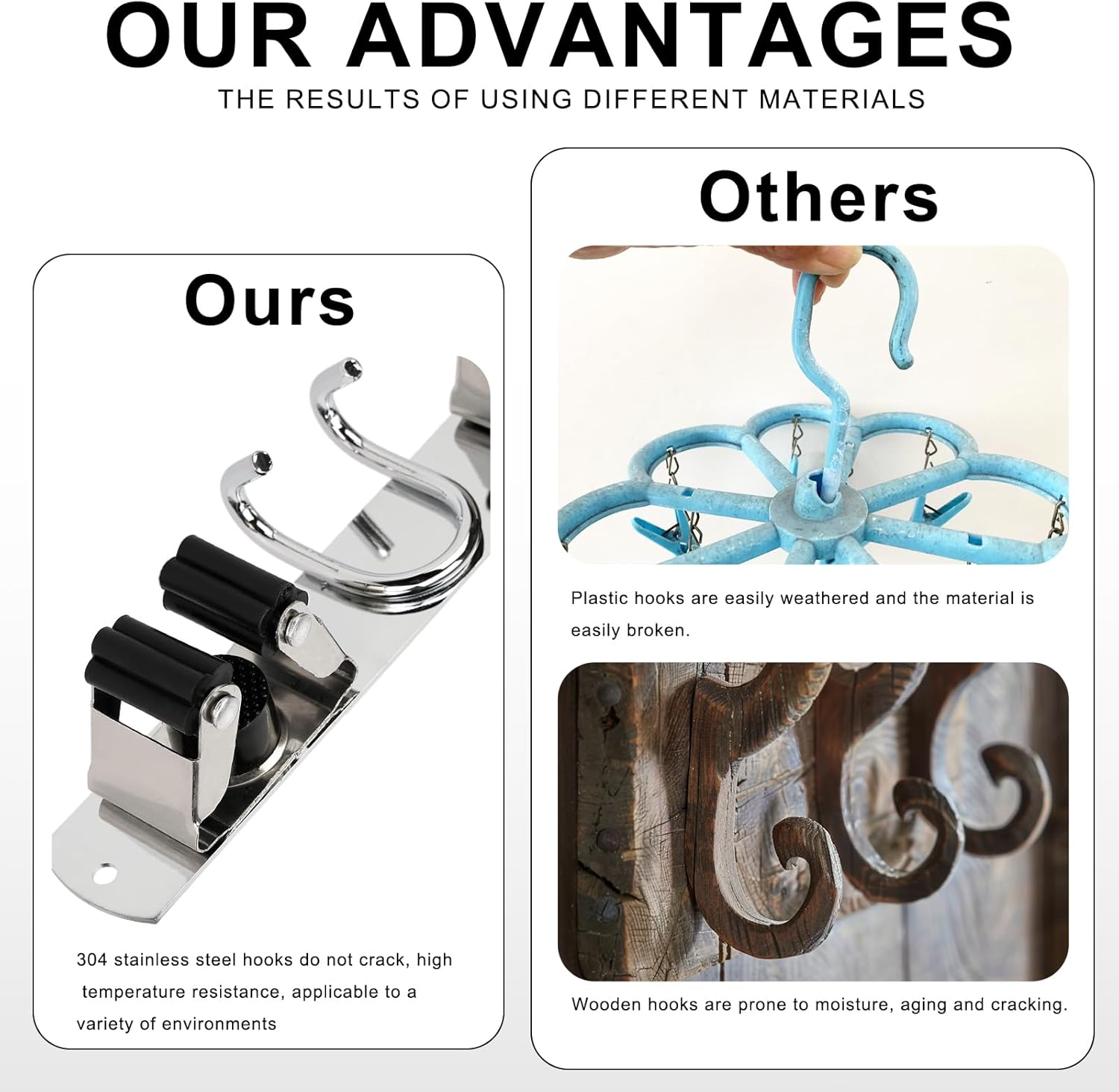 - TOP-NOTCH MATERIALS, SUPERB QUALITY: The Broom Holder wall mount is crafted from top-quality stainless steel that is exceptionally sturdy and long-lasting. There is no need to fret about it breaking or getting damaged. Plus, it won't develop rust even in a damp setting