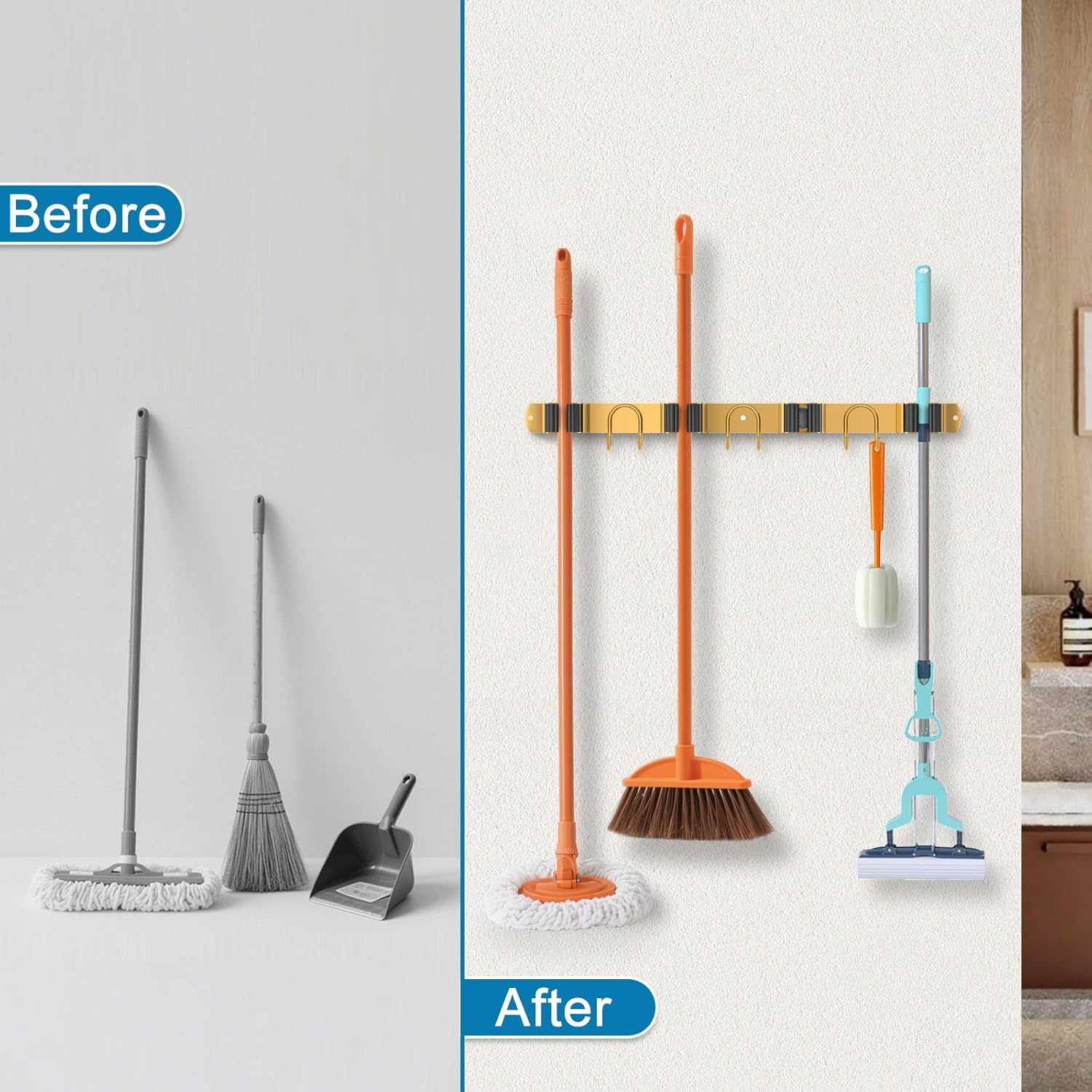 - Clutter-Free and Stylish: This wall-mounted broom organizer keeps your space tidy while adding modern flair. Securely holds all your tools, eliminating messy piles for a cleaner, more aesthetic home