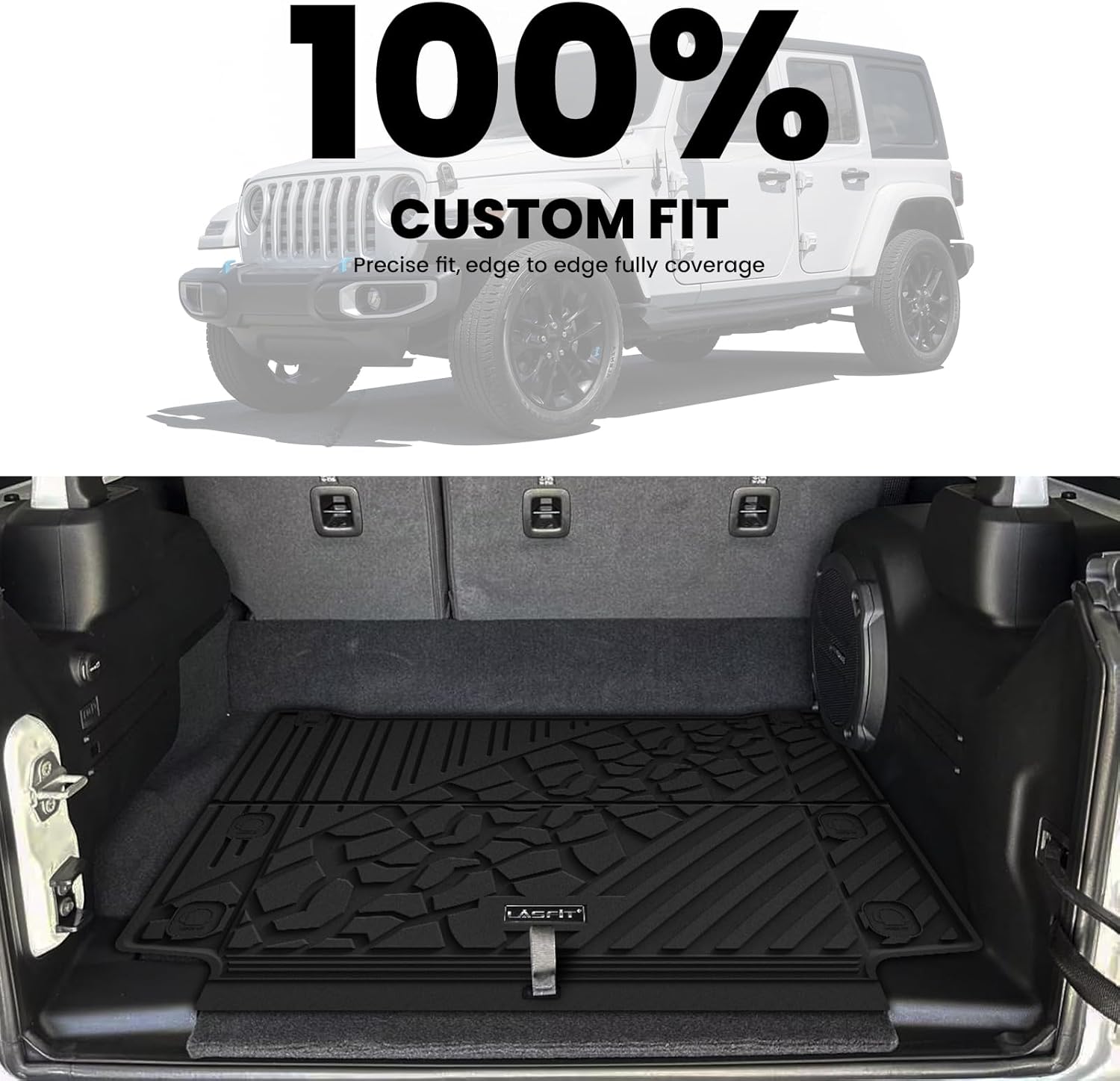 - LASFIT LINERS - Compatible for Jeep Wrangler Unlimited 4XE 2021-2024 2025 4 Door with Subwoofer PLUG-IN HYBRID EV-GAS (PHEV) (NOT fit without Subwoofer).