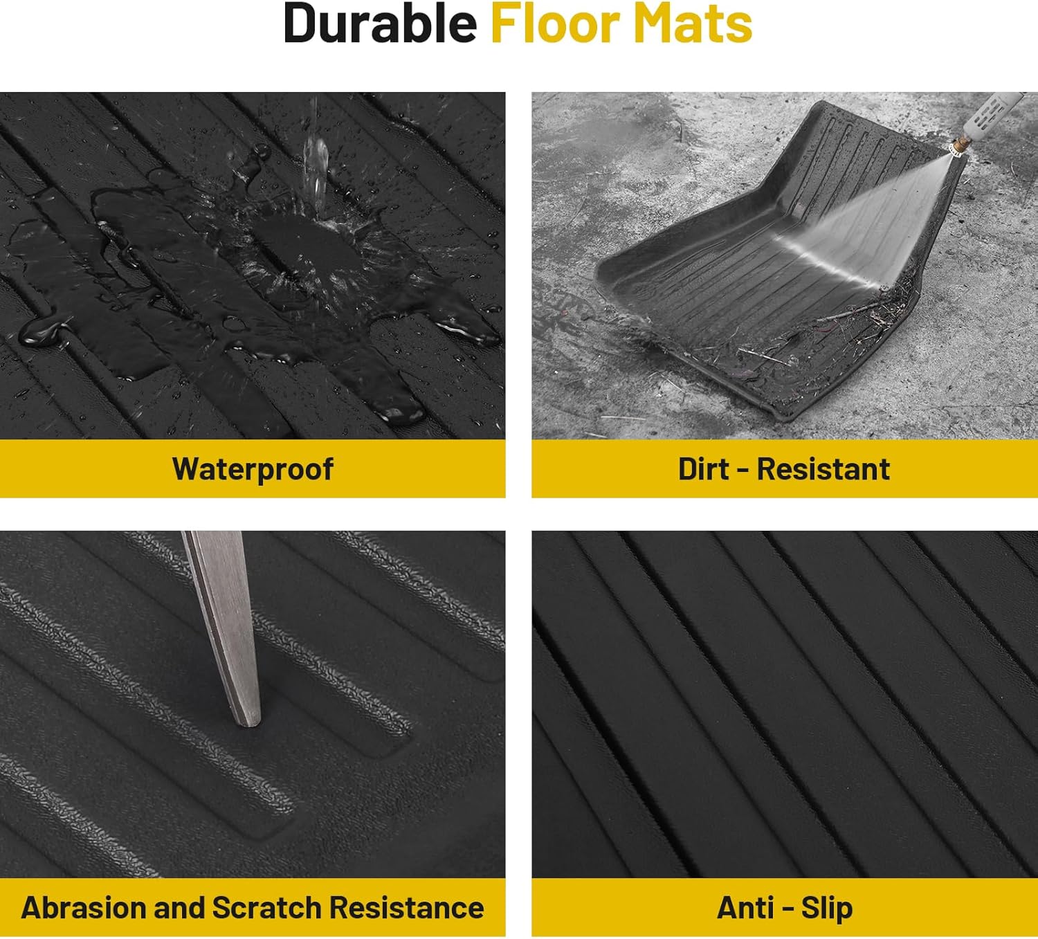 - Non-Slip Texture: Featuring a textured, non-slip design and reinforced with sturdy rivets, these car truck mats stay firmly in place even under heavy use, maintaining the cleanliness and integrity of your vehicle.