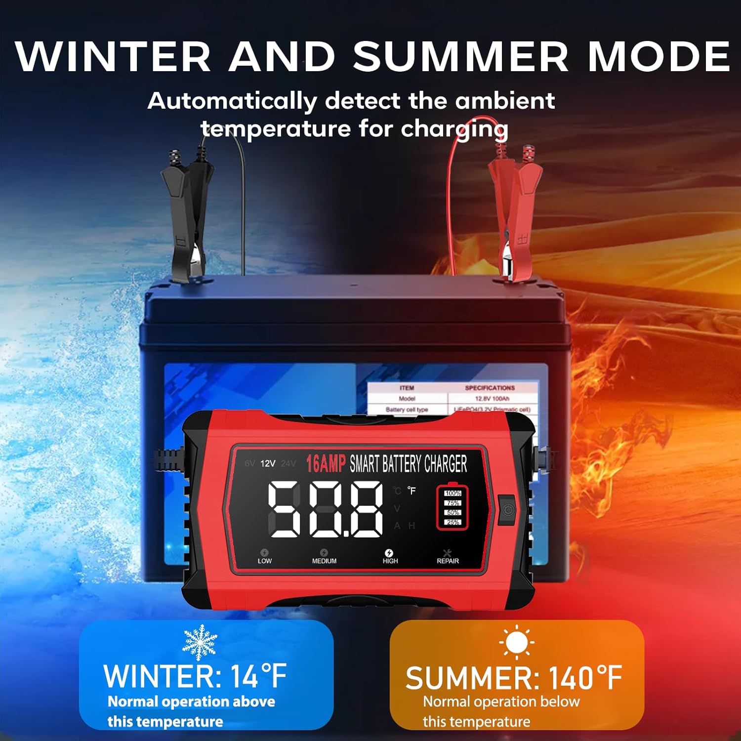 - 【Meet New Haisito Car Battery Charger】Haisito 16Amp battery charger has been fully upgraded, featuring a brand new LCD screen design that increases screen brightness, allowing for clear viewing even during the day. The smart charger supports 6V 12V and 24V battery chargers, with a maximum charging current of 16A.