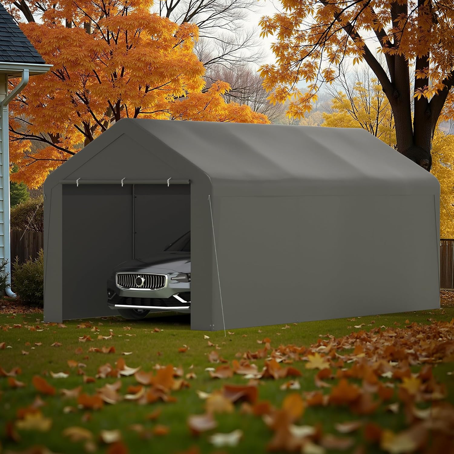 Carport, 10‘ x 20’ Heavy Duty Portable Garage All-Season Car Canopy w/Removable Sidewall & Doors, Carport Canopy Party Tent w/Water-Resistant Tarp for Backyard (Grey, 10‘ x 20’)