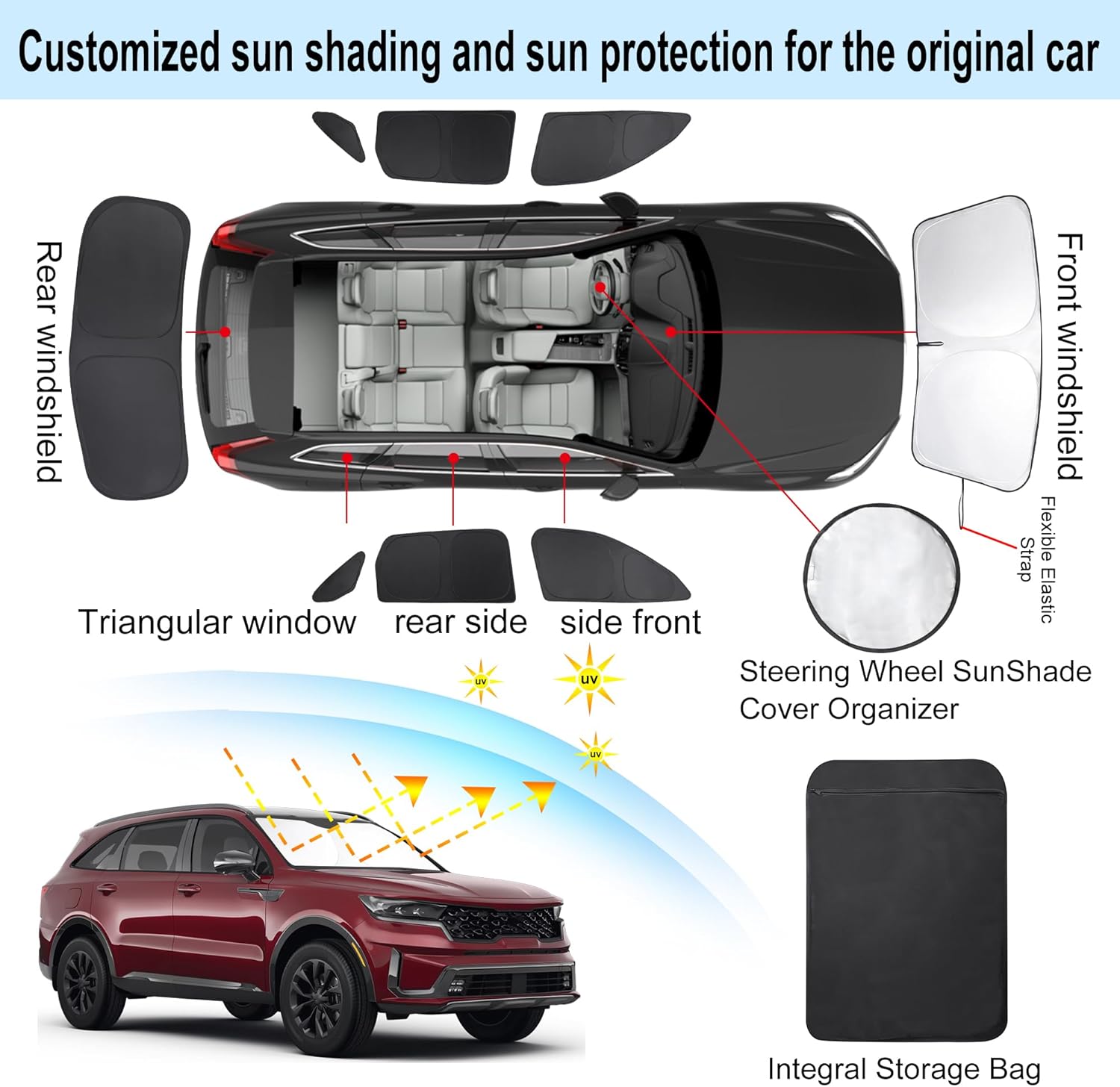 - Customized Design:The sun shade custom fit for Kia Sorento SUV 2021-2024 2025.Our window shade is according to the car size design,perfectly fit your car and does not need to trim.windshield sun shade solve the problem of light leakage and incompatibility of the old umbrellas.The sunshade designed for Kia Sorento SUV 2021-2024 2025.