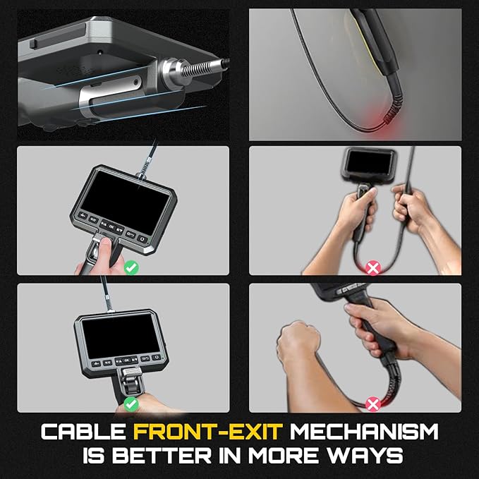 - 【Breakthrough Cable Front-Exit Ergonomic Design】The cable Front-Exit design is a tough tech and mainly used in high-priced thousands articulating endoscopes. Now we have conquered and achieved!! Which is more smooth and convenient in operation than rear-exit model, especially inspect upwards direction and front direction; AGC900D also equipped with a bracket, which set hands free to hold the handle.