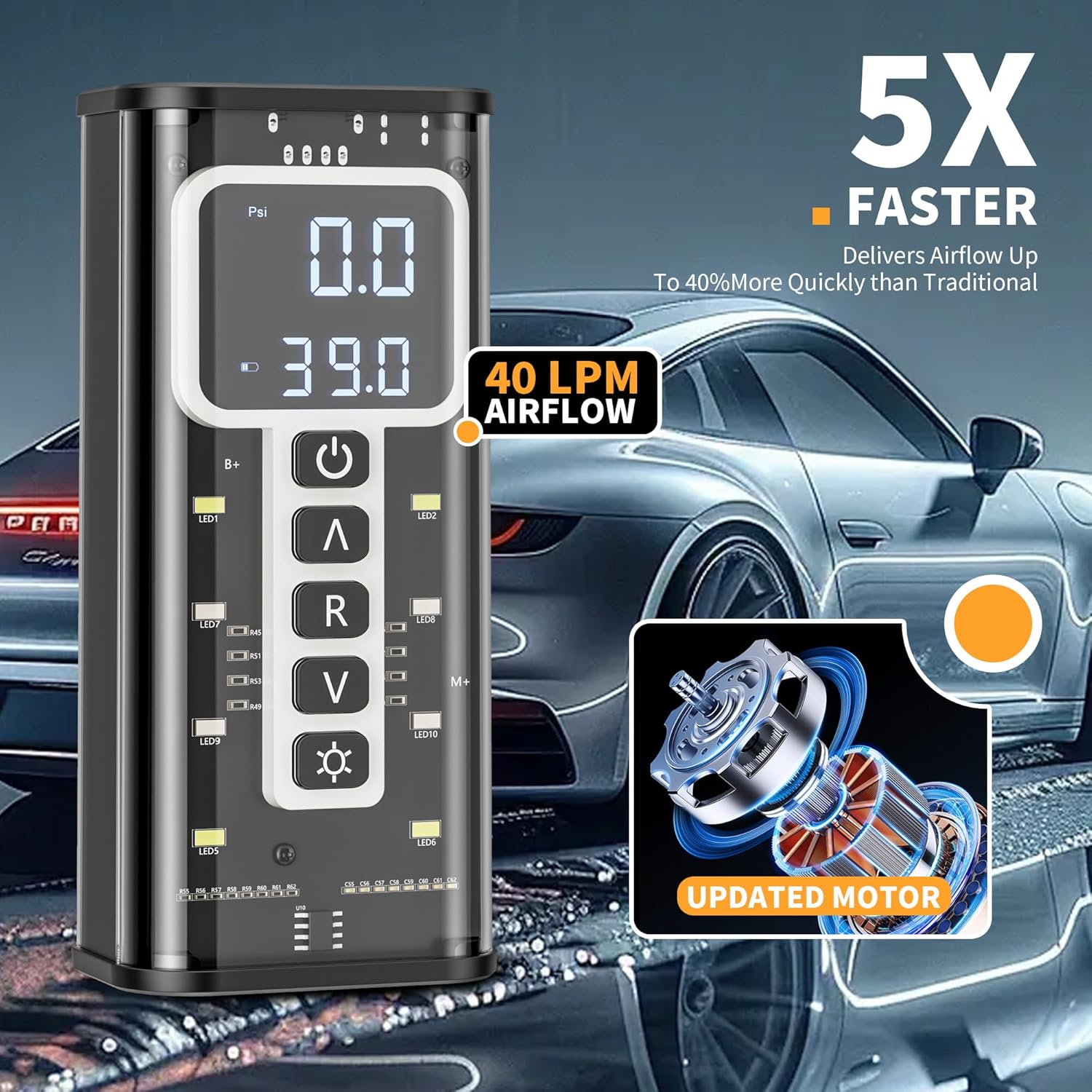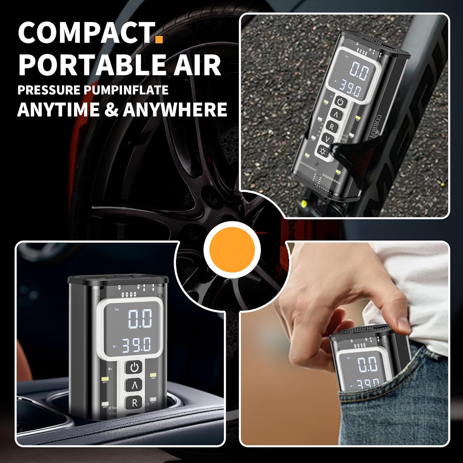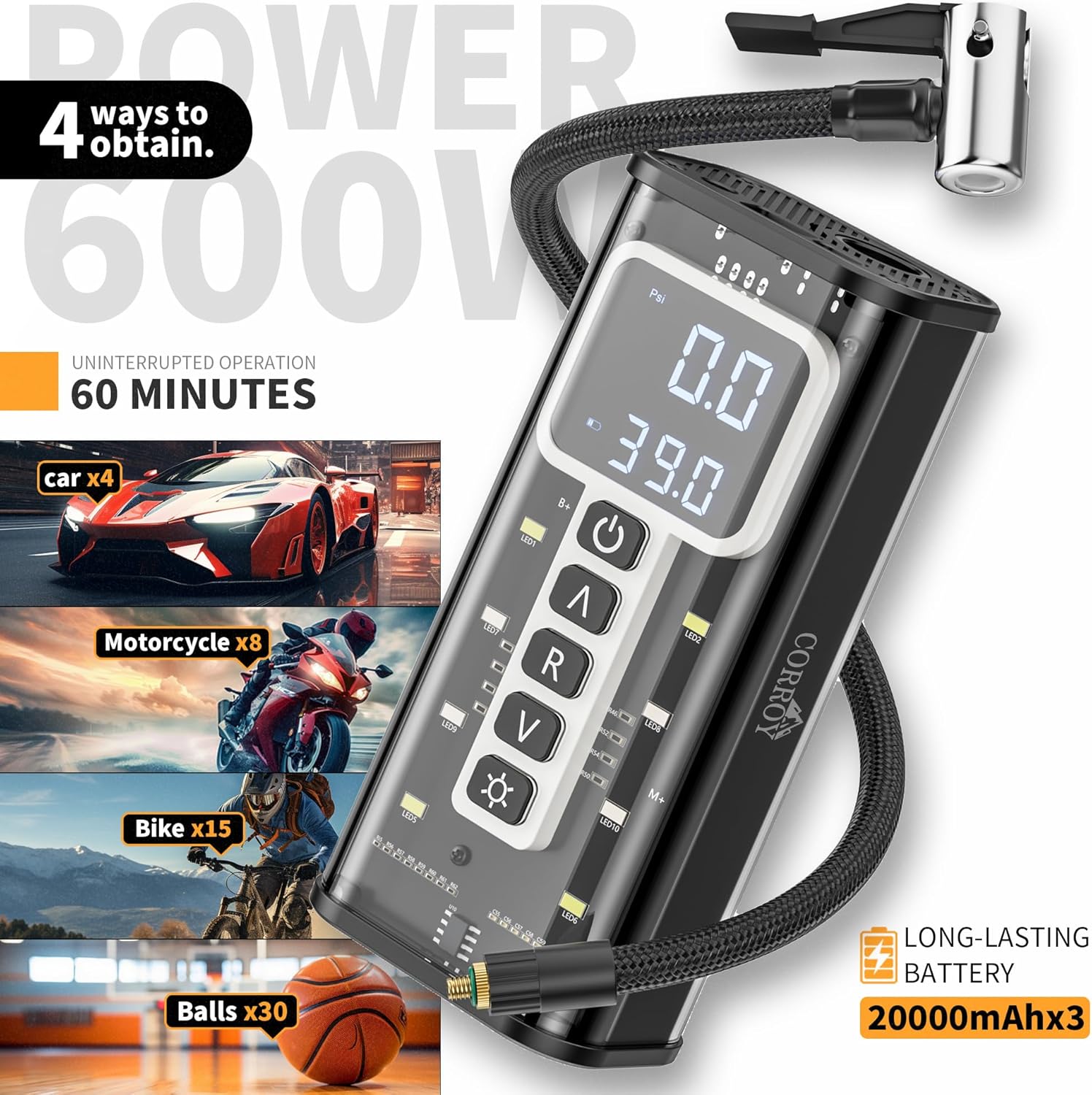 - Equipped with a built-in 20,000mAh rechargeable battery, the CORROY tire air pump works without the need for an external power source.ideal for long trips or emergencies without worrying about low battery.