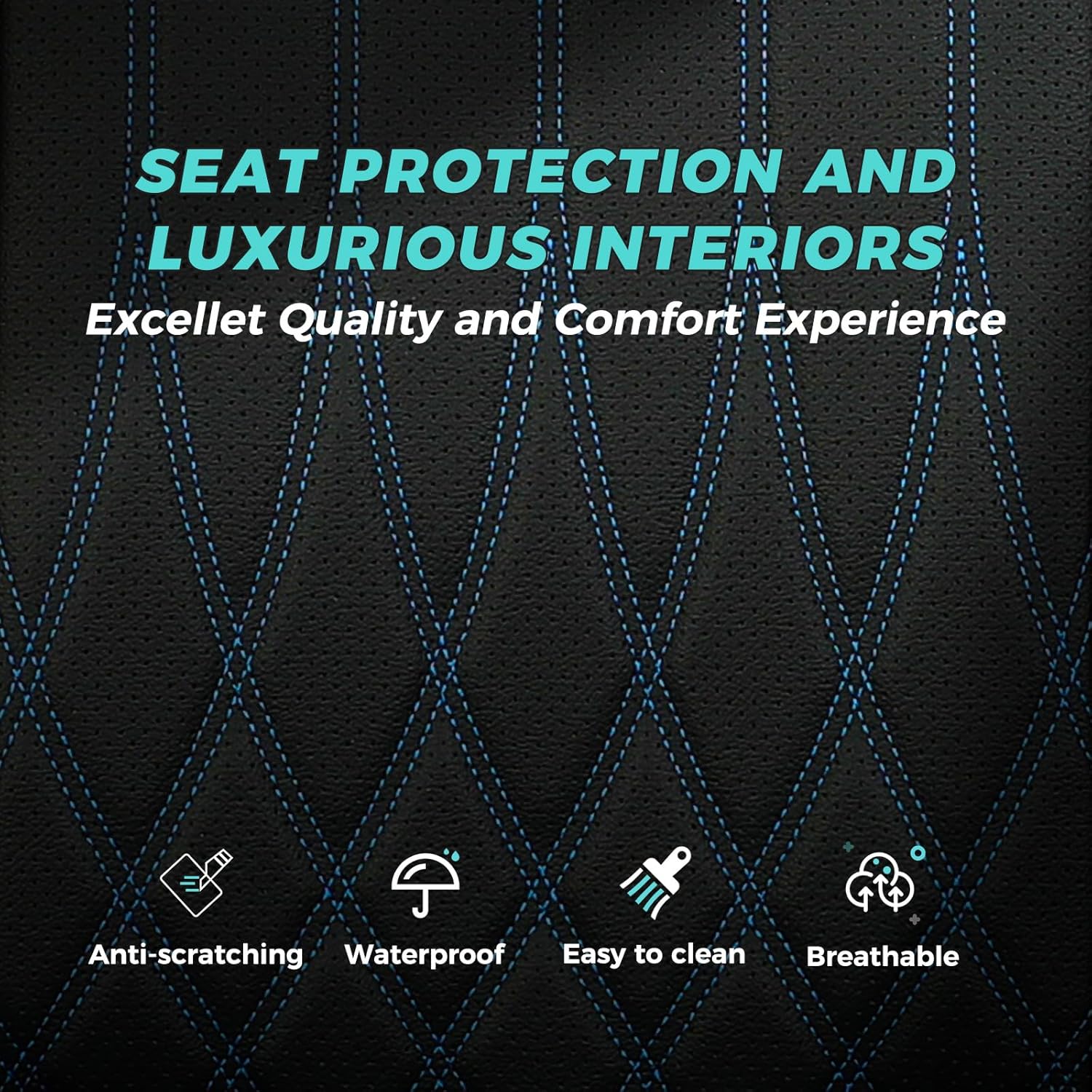 - Faux Leather - Our car seat covers are made from faux Nappa leather, providing superior protection for car seat covers. Designed with comfort, aesthetics, and longevity in mind, these leather seat covers are also waterproof, stain-resistant, and easy to clean. They are an excellent choice for individuals seeking to upgrade or protect their car's upholstery