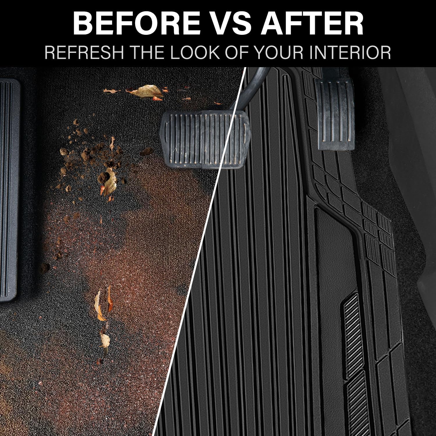 - 【All Weather All Season Protection】CAR PASS heavy duty rubber solid black car mats use for all season.Ridge channels specifically design to prevent fluids from leaking onto carpets,the deep channels also trap any mud, dirt, water or snow that gets in your car.