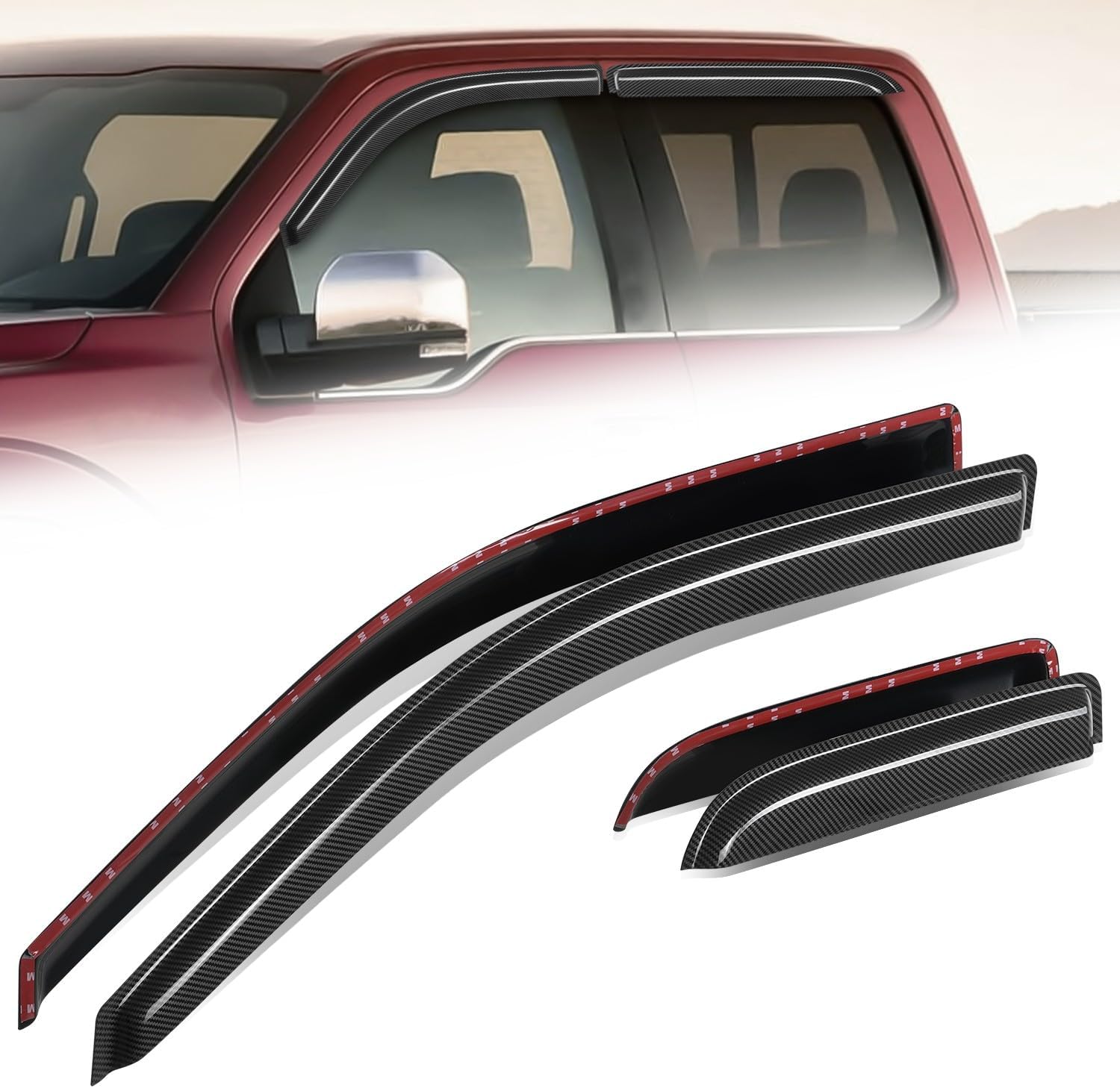 Auto Dynasty 4Pcs Carbon Fiber Pattern Window Visors Compatible with 2004-2014 Ford F150 Extended Cab 4-Door, Tape-On Front & Rear Window Deflectors Rain Guards Sun Air Side Vent Shade, Glossy Black