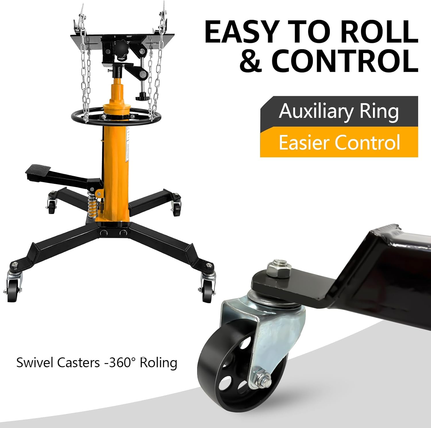 - Greater lifting range:Enhanced hydraulics for greater lifting range,Stainless steel rods for extended use for installation or removal of any car or light truck transmission