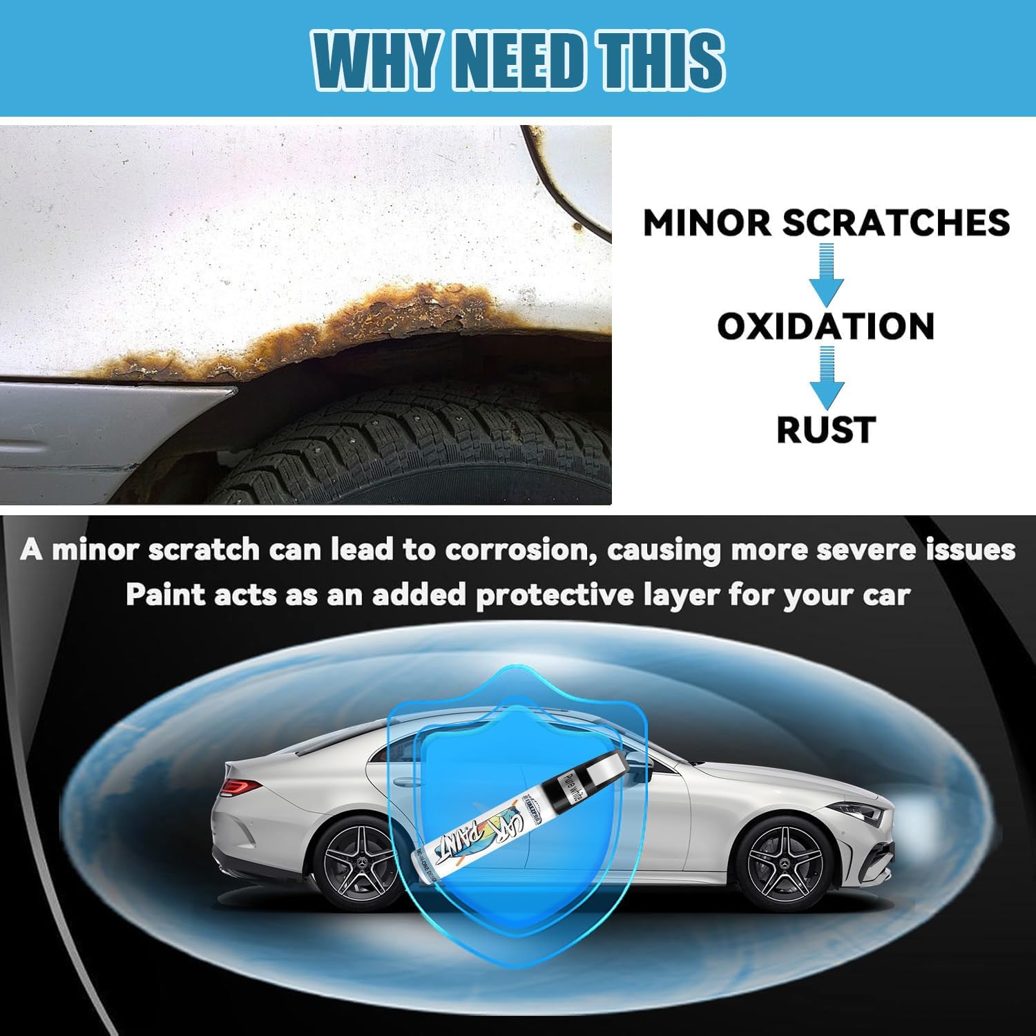 - Lasting Car Paint Protection: Ugly scratches and chips on your car can be annoying, these minor scratches will rust and damage your car. Don't worry! FIXEZPRO car paint scratch repair is waterproof and UV resistant, which seals scratches and prevents future rust, providing long-lasting protection for your car. A must-have accessory for long-term car care!