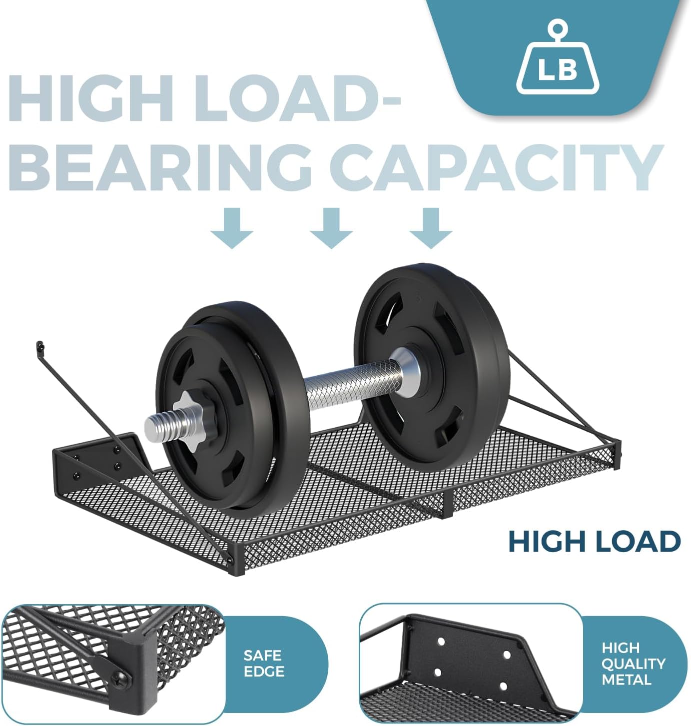 Garage Wall Shelf (2PCS-23.6"x12"x2.2") Steel Wall Shelf Storage Rack-design of TRIANGULAR BRACKET, Wall Mount Heavy Duty Metal Shelves Mesh Storage Rack for Garage, Office, Basement Kitchen, Closet