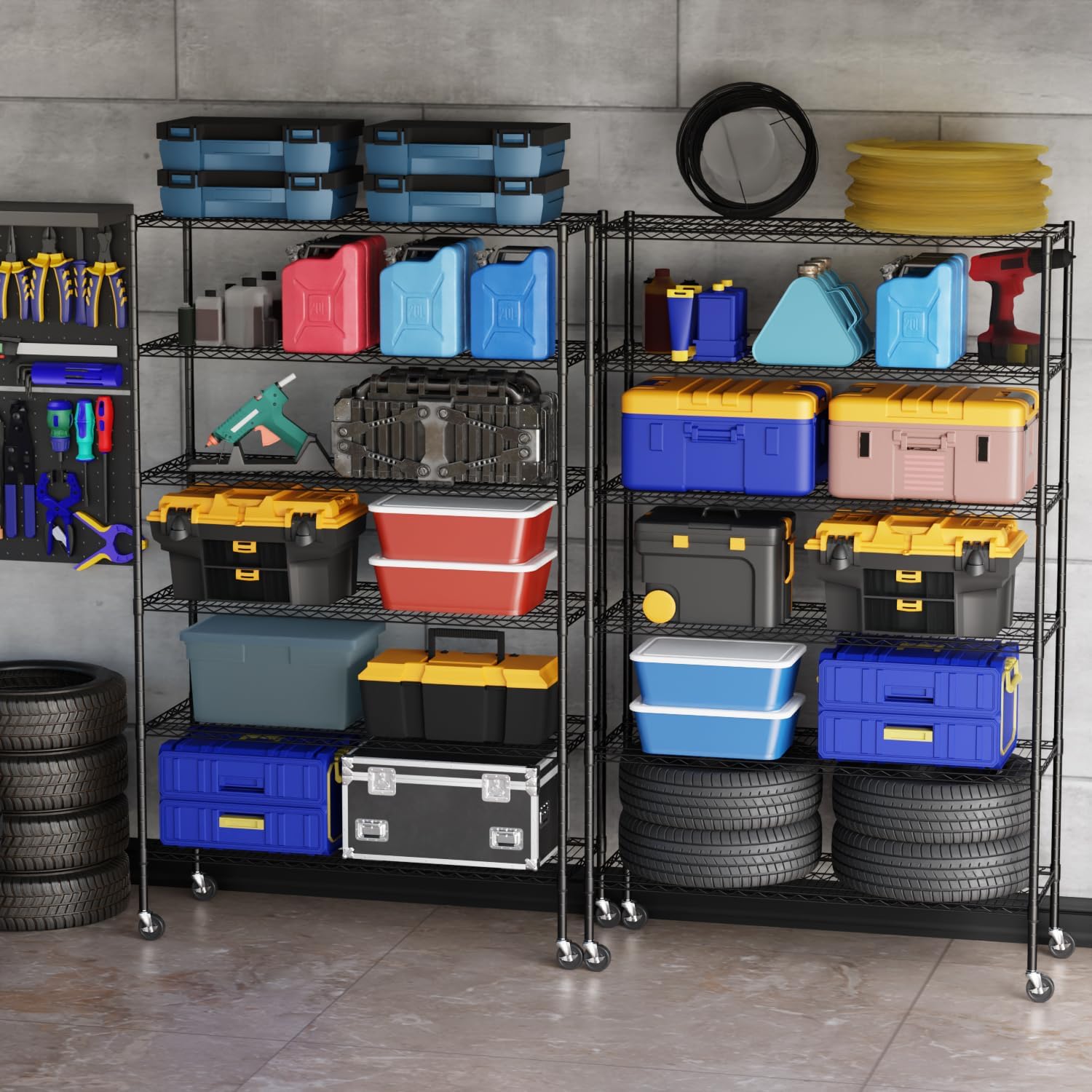 - √【ADJUSTABLE WIRE SHELF】: You can adjust the height of the storage shelves according to the size of the item.The spacing of each layer of this metal shelf can be adjusted.Shelves of the wire shelving unit are adjustable height at 1" increments.storage shelves metal shelf wire shelving unit.