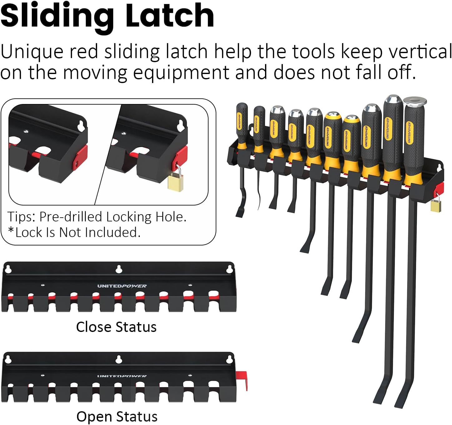 UNITEDPOWER Pry Bar Holder, Lockable Wall Mount Storage Rack Organizer for Workshop, Shed, Garage, Home, Stores up to 10 13 Tools or Extensions
