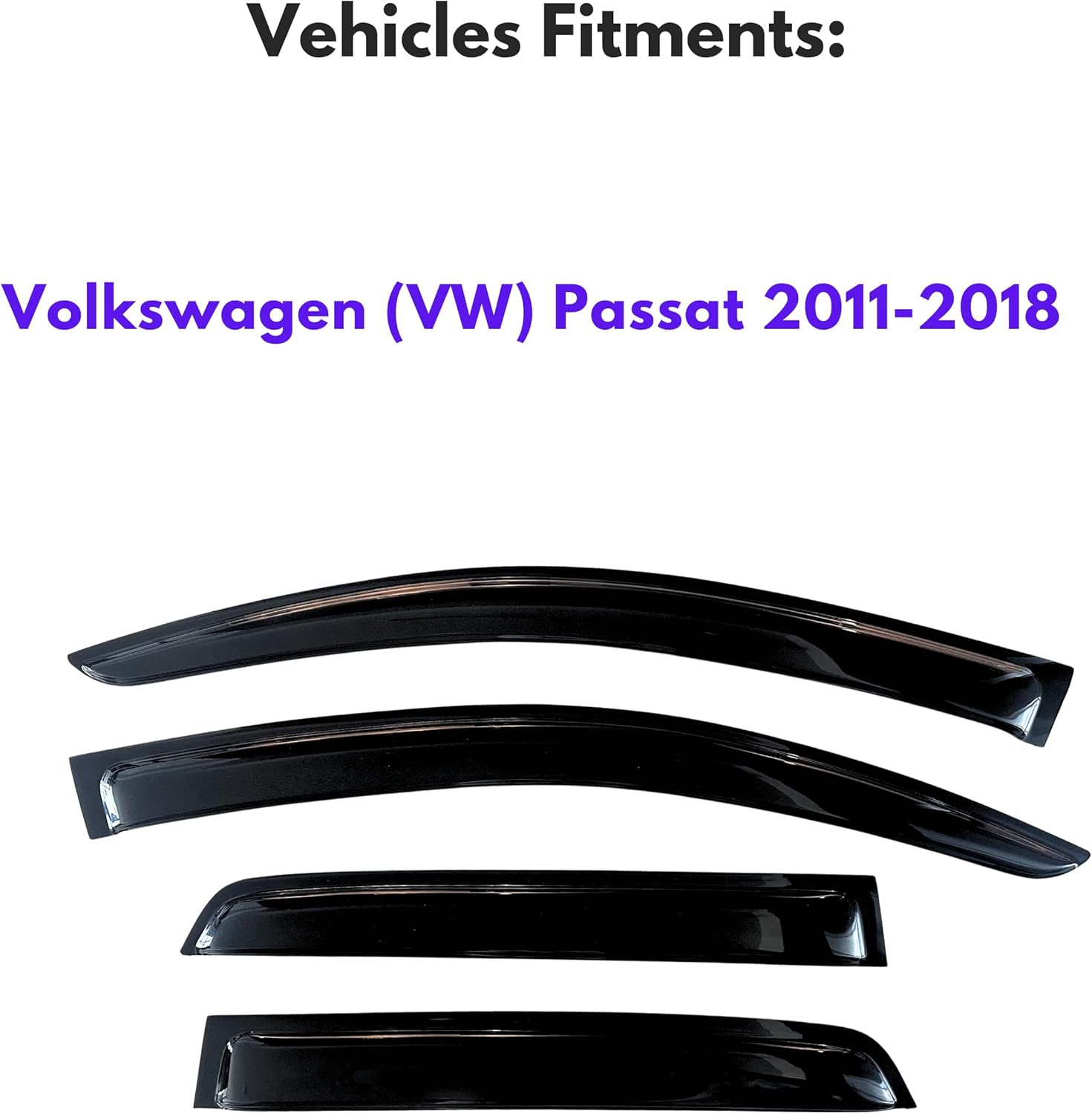 - 【Perfect Fit】KPY window visors rain guards vent deflectors compatible with Volkswagen (VW) Passat 2011-2018
