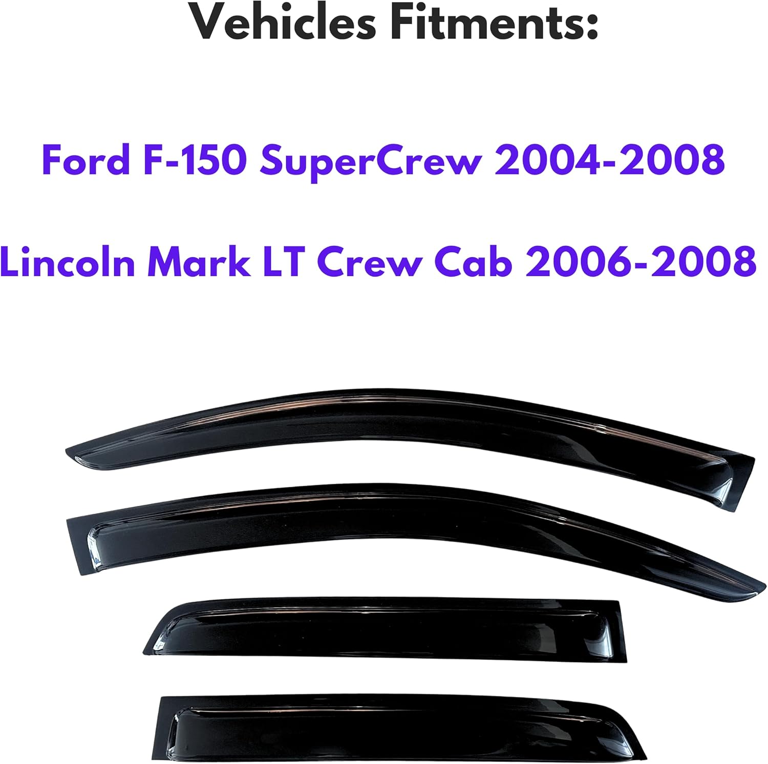 - 【Perfect Fit】KPY window visors rain guards vent deflectors compatible with Ford F-150 SuperCrew 2004-2008 & Lincoln Mark LT Crew Cab 2006-2008 (SuperCrew Cab Only)