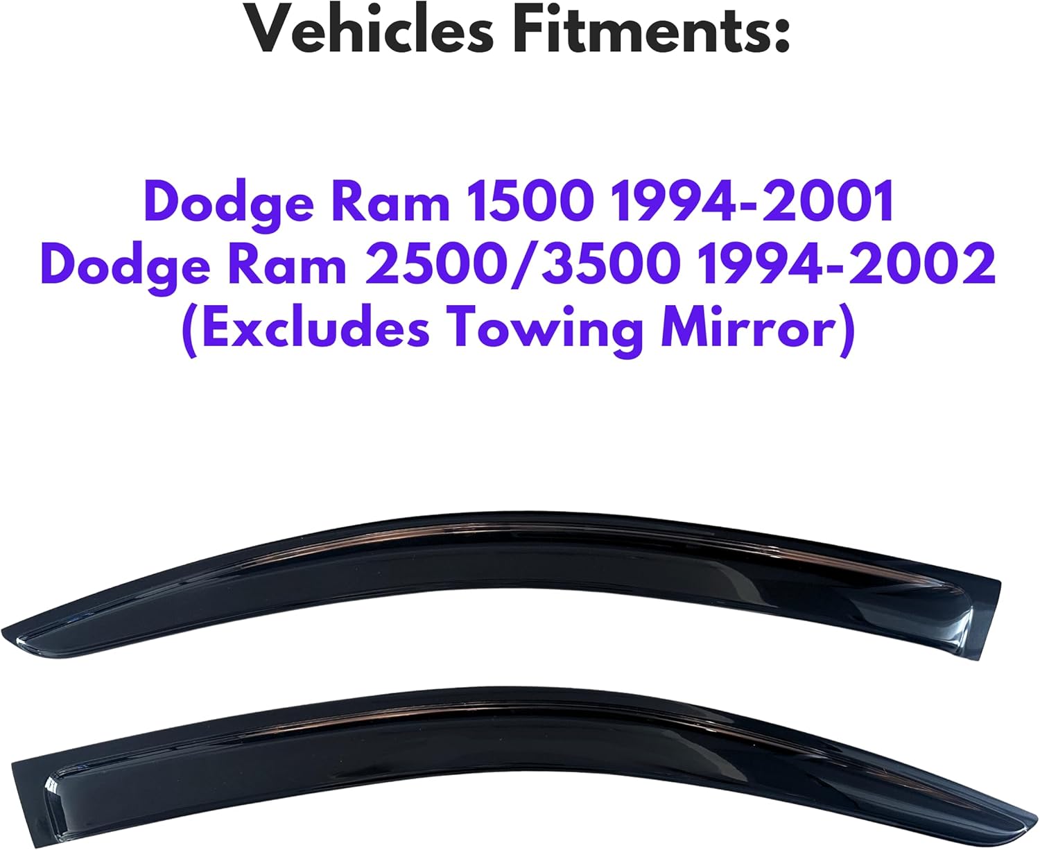 - 【Perfect Fit】KPY window visors rain guards vent deflectors compatible with Dodge Ram 1500 1994-2001 & Dodge Ram 2500/3500 1994-2002 (Excludes Towing Mirror)