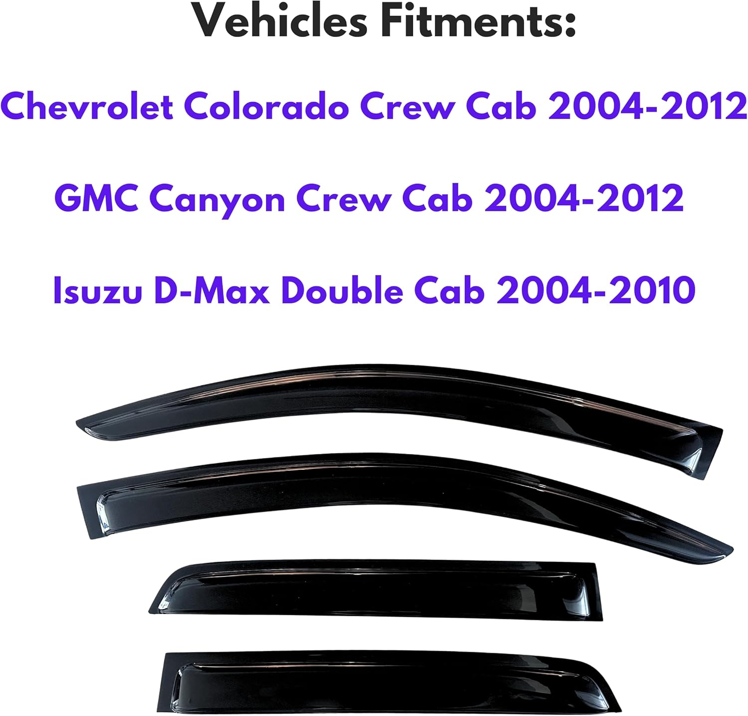 - 【Perfect Fit】KPY window visors rain guards vent deflectors compatible with 2004-2012 Chevrolet Colorado Crew Cab & GMC Canyon Crew Cab & 2004-2010 Isuzu D-Max Double Cab