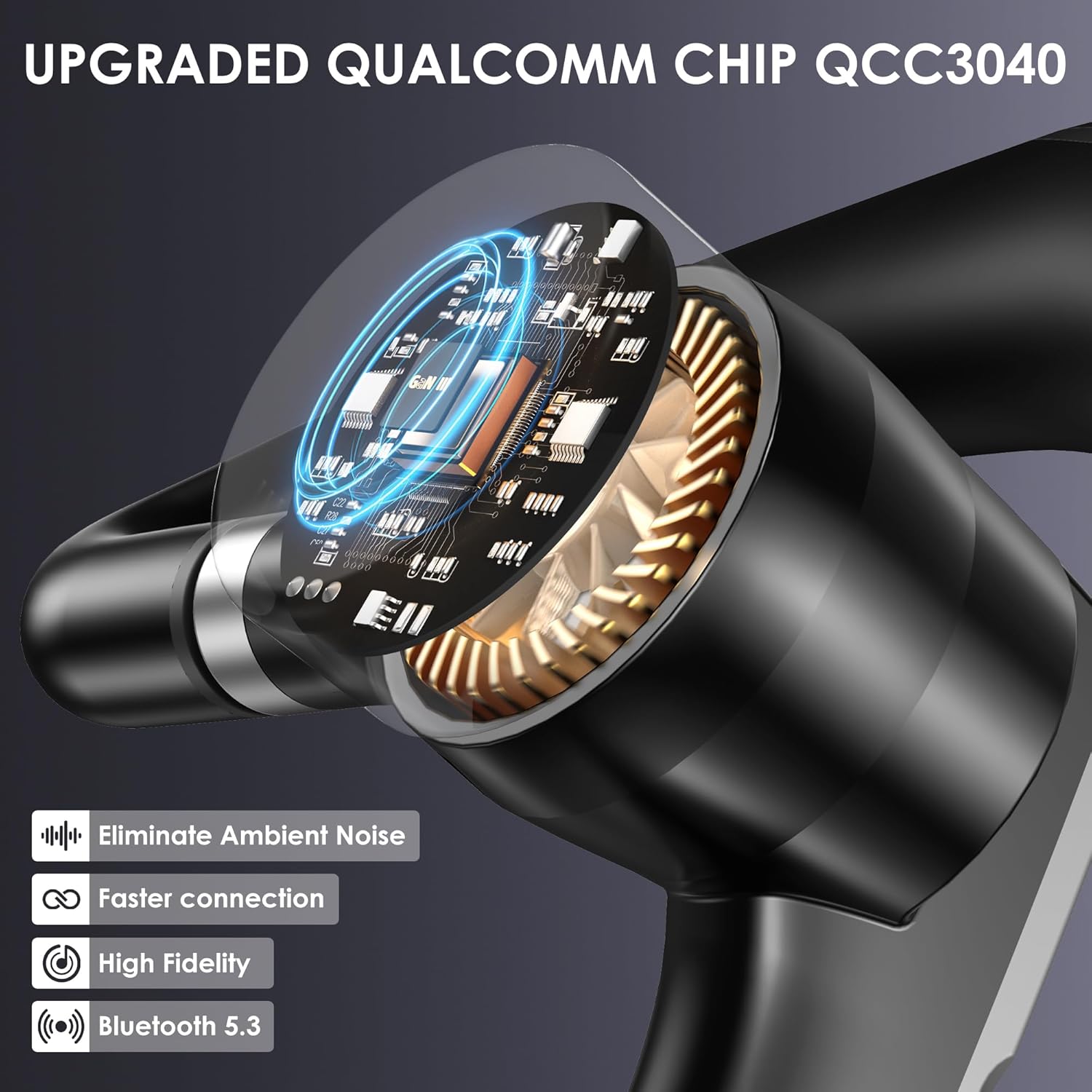 - Noise Cancelling Headset with Microphone EKVANBEL UPGRADE wireless headset built in Qualcomm chip QCC3040 and AI environmental noise cancellation microphones, it can eliminate up to 99.99% of the ambient noise, whether you are in a busy central area or on a truck, callers can seamlessly communicate with you like face-to-face, making it the ultimate choice for remote workers. Our Bluetooth headset is equipped with separate mute buttons, your conversations are yours.