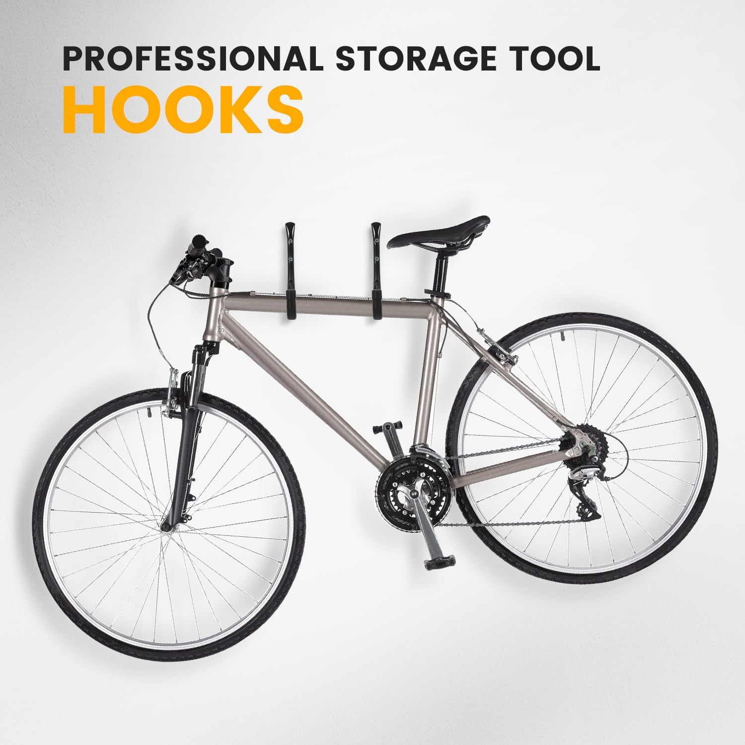 - VERSATILE STORAGE SOLUTIONS: Designed for multi-space organization, these wall hooks accommodate ladders, bikes, chairs, shovels, strollers, and garden equipment. Their space-saving design efficiently declutters garages, homes, and outdoor areas while providing a versatile organizational solution for diverse items.