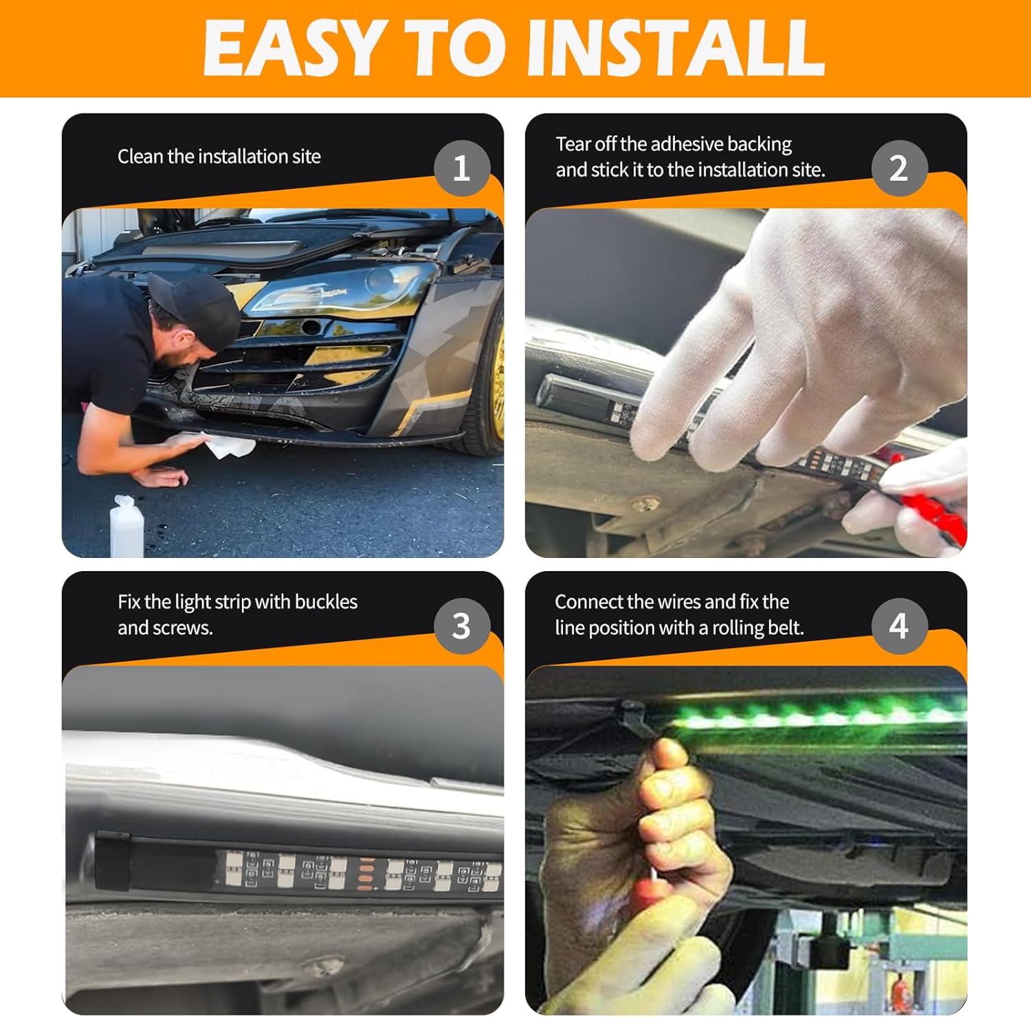 - 【Super Brightness】:This car underglow strip lights kit with double row high quality RGB 5050 chip light beads ultra-bright light strips,252 LEDsin total, more brightness than other products on the market. High brightness, low power consumption,lighting up the entire under car, enhances the stylish look your vehicle.