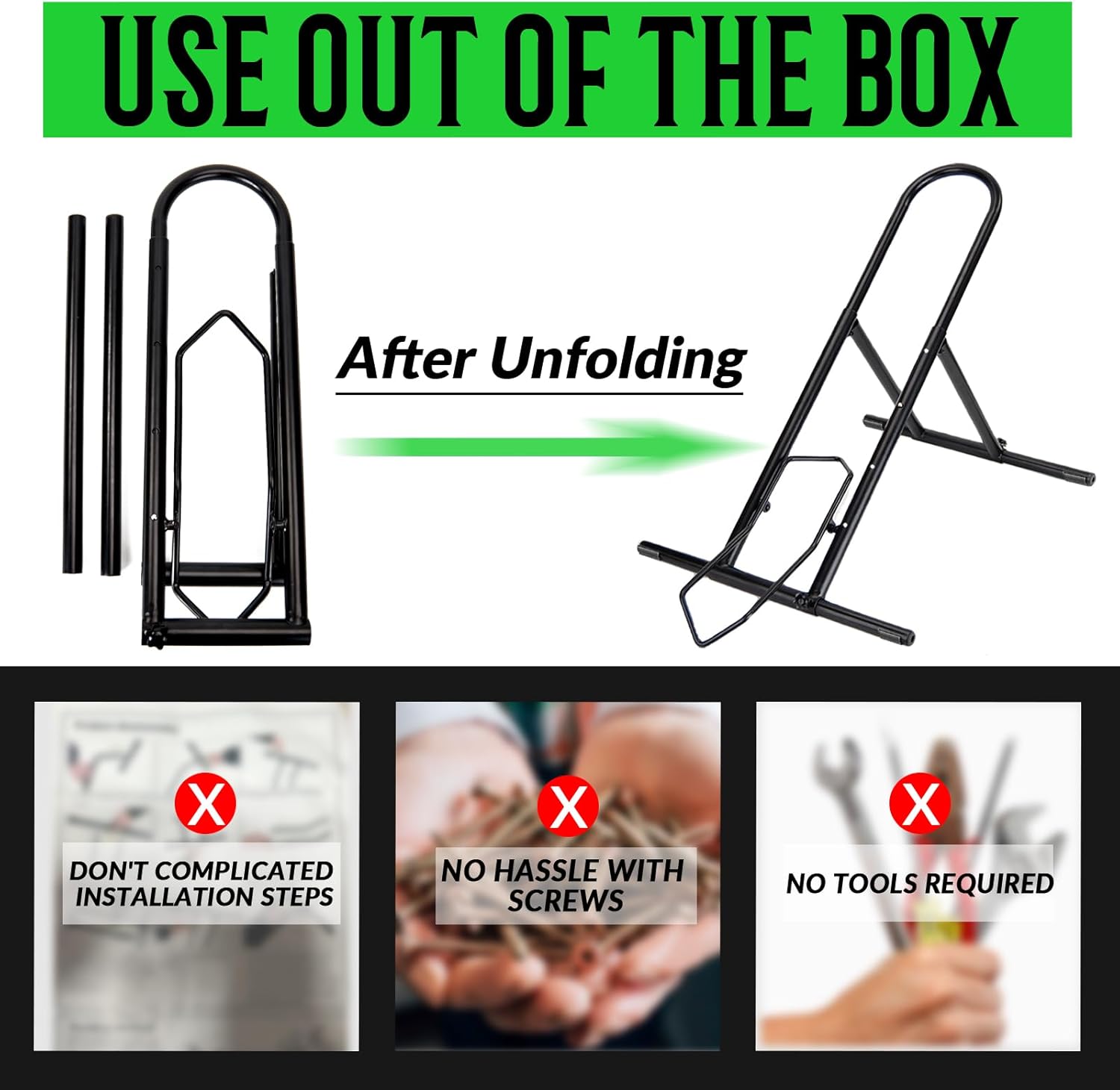 - Foldable and Lightweight Bike Storage Rack: This bike stand is designed for maximum convenience at home. Its foldable structure allows it to be easily tucked away when not in use, saving valuable space in your garage, apartment, or storage area. The lightweight design ensures you can move and position bike rack effortlessly, making bicycle stand easy to reorganize your space or relocate the rack as needed. With its compact and practical design, this bike rack enhances home organization while keeping your bike securely stored.