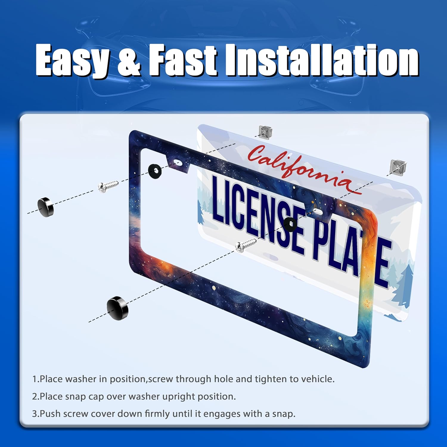 - Size: suitable for US Canada standard size 12.3" x 6.3" , All Accessories Needed are Included ( Screw Caps,Screws,Washers),Quick and Simple Installation